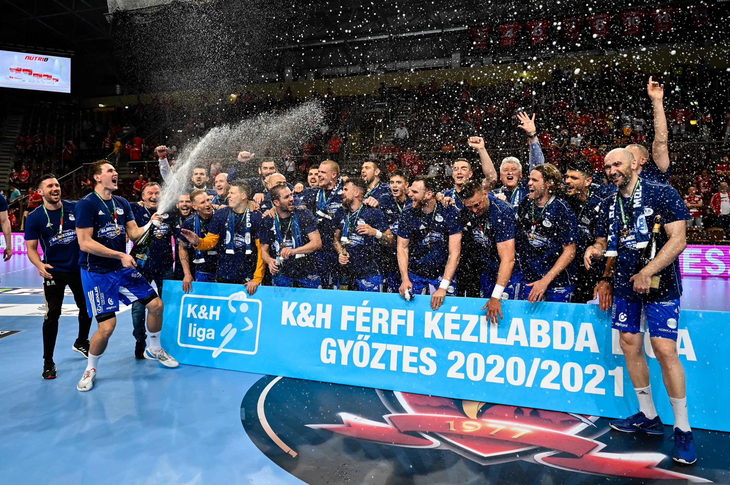 Az 1996, 2007 és 2018 után történetük negyedik bajnoki címét ünneplő szegediek 31-28-re nyerték meg hazai pályán a párharc szerdai, első meccsét, így 68-64-es összesítéssel hódították el az aranyérmet.