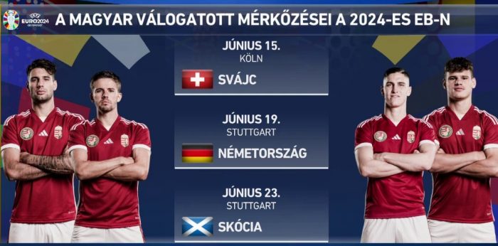 Marco Rossi szövetségi kapitány tanítványai június 15-én Kölnben a svájciak ellen kezdenek, majd június 19-én Stuttgartban Németországgal játszanak, június 23-án pedig ugyanitt a skótokkal találkoznak a kontinenstornán.