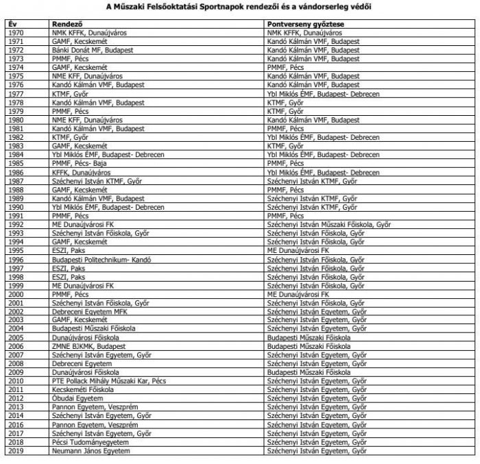 A Műszaki Felsőoktatási Sportnapok történetében huszonnyolcadik alkalommal, 2010 óta sorozatban kilencedszer végzett az élen a Széchenyi István Egyetem. Az idei kecskeméti verseny az elmúlt pár év elsöprő győri fölénye után szorosabb küzdelmet hozott, de a már-már megszokottnak mondható címvédés ezúttal sem maradt el. Jövőre, a Műegyetem rendezésében megvalósuló jubileumi ötvenedik viadalon összejöhet az egymást követő tizedik győzelem is.