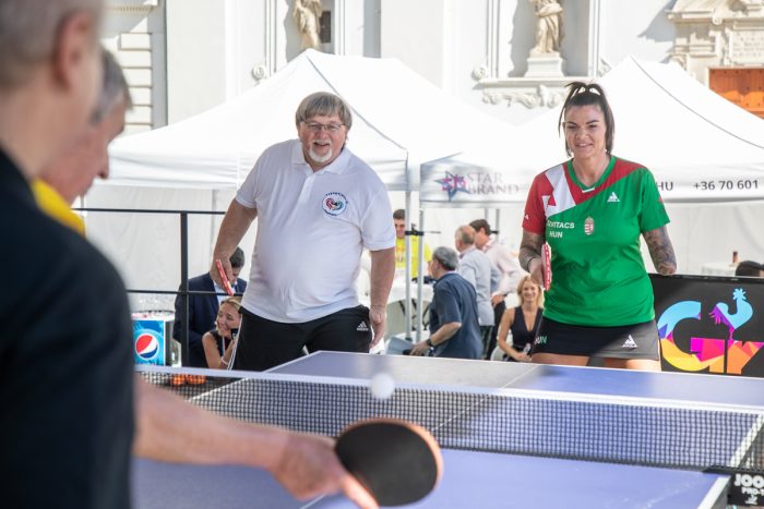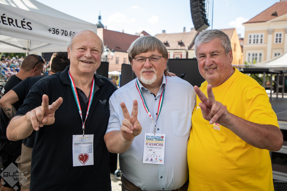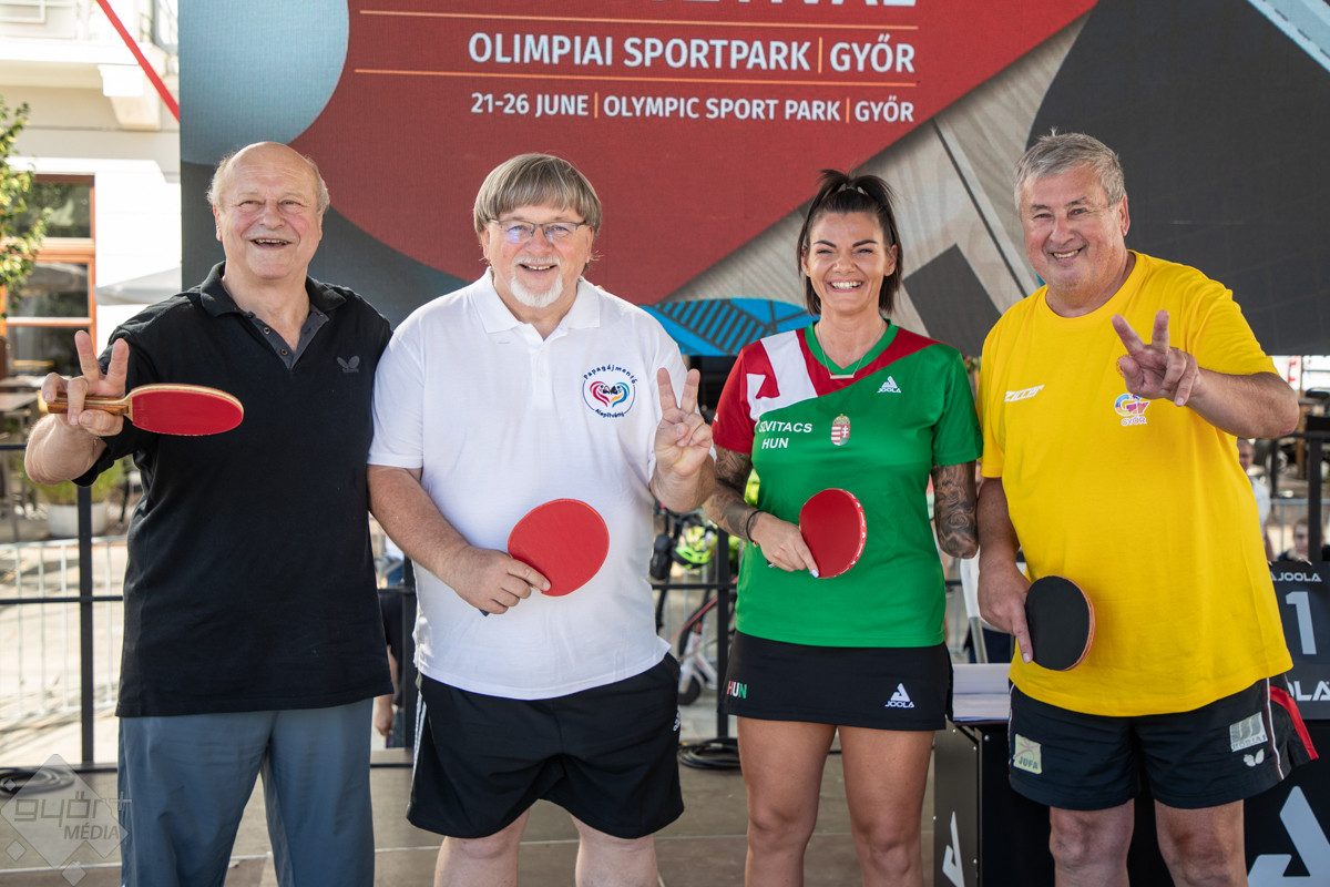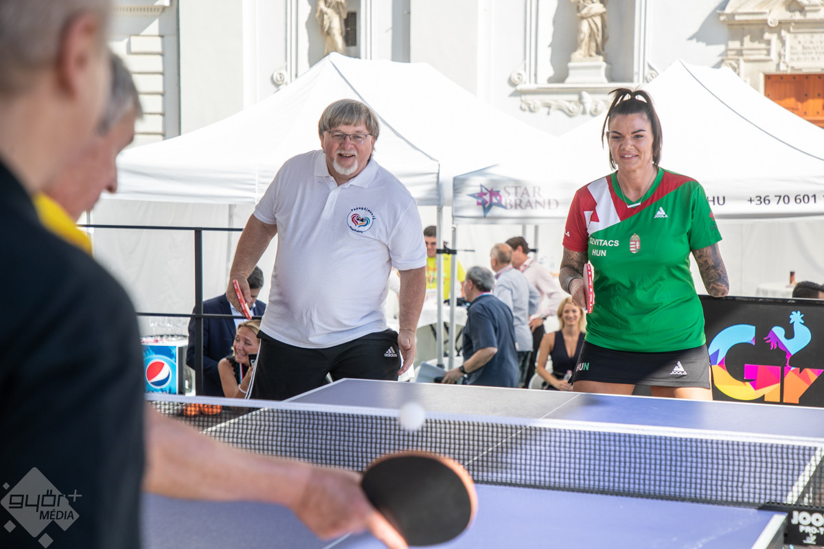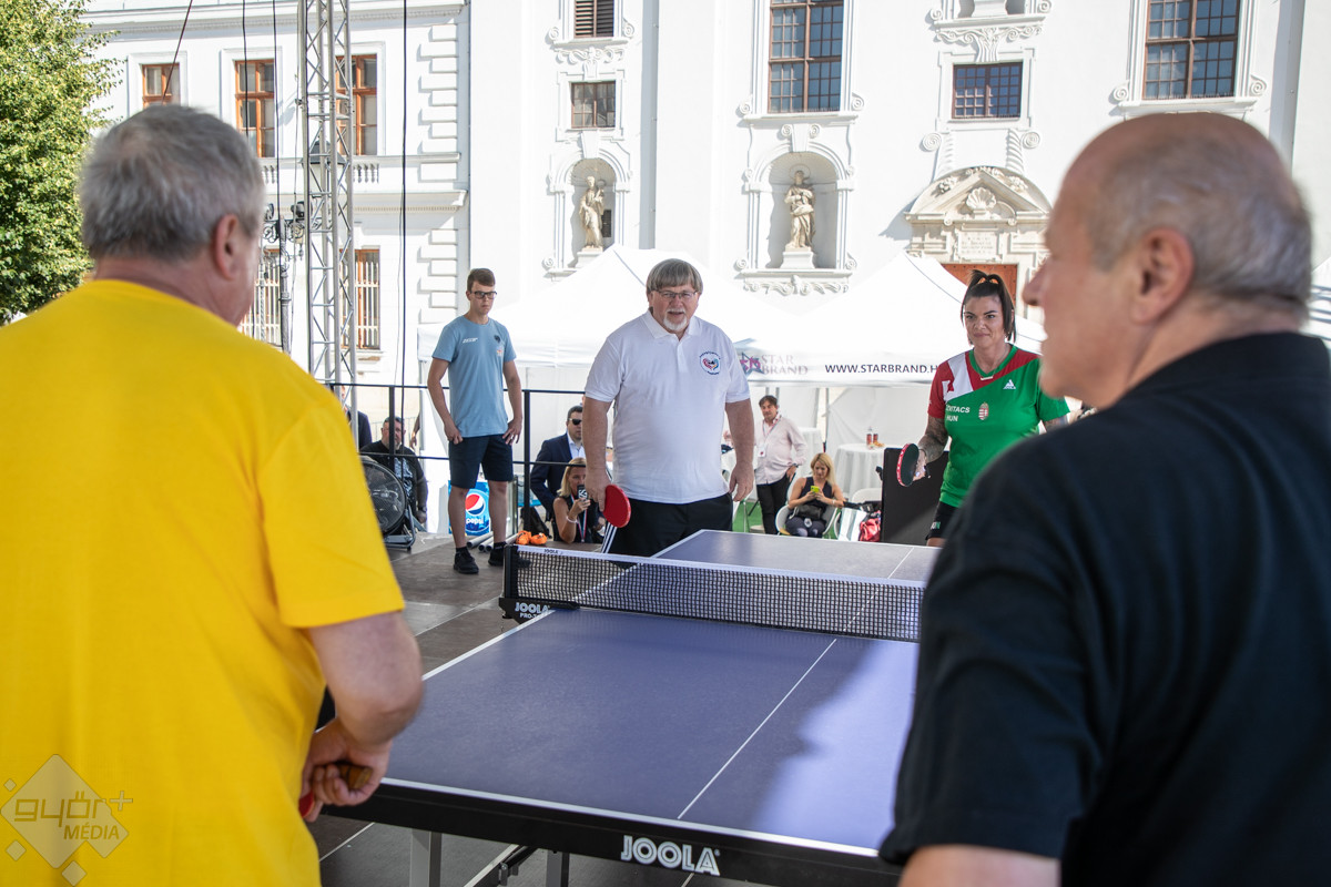 A záróünnepség különleges meccset is tartogatott, hiszen a színpadon dr. Dézsi Csaba András Győr polgármestere a paralimpiai bronzérmes Szvitacs Alexával alkotott egy párost, ellenfelük pedig a többszörös világbajnok Jónyer István, Klampár Tibor kettős volt.