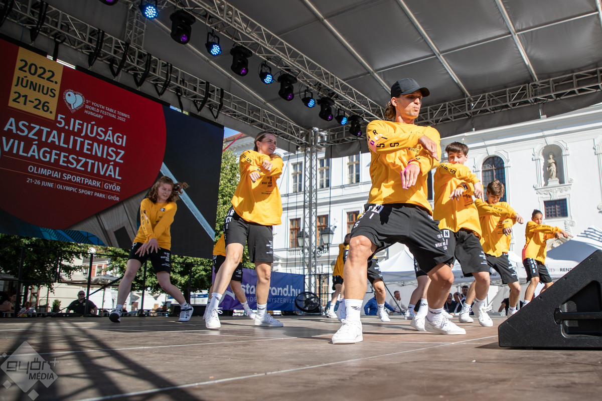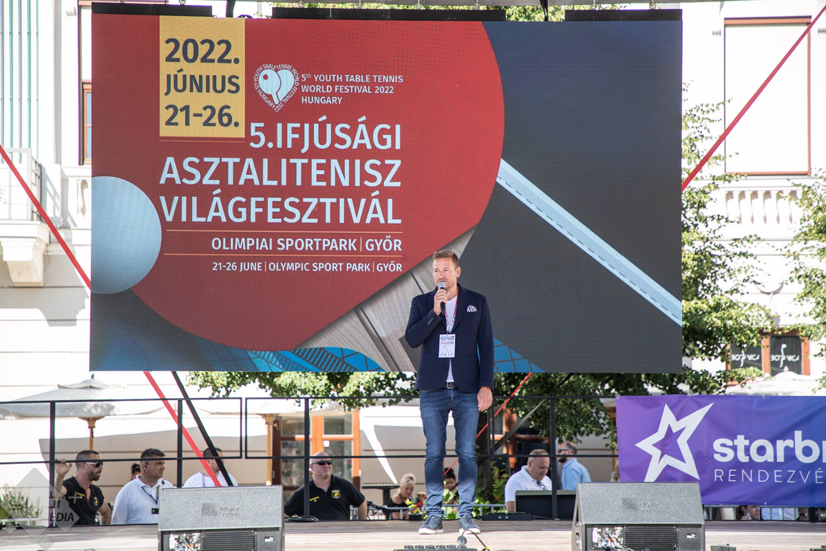 A Világfesztivál záró ceremóniáját a Széchenyi téren rendezték, ahol több sportágat is kipróbálhattak a résztvevők, a színpadon pedig fellépők egész sora szórakoztatta a Győrbe érkezett ping-pongosokat.