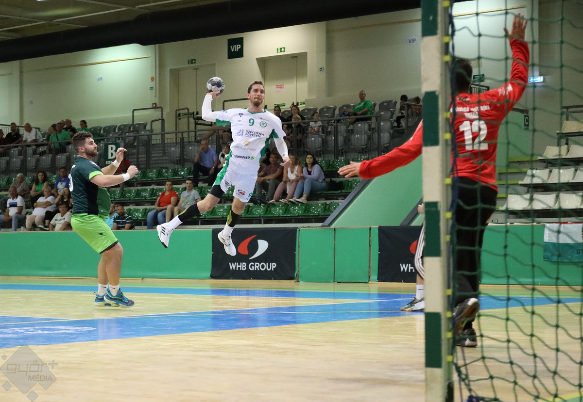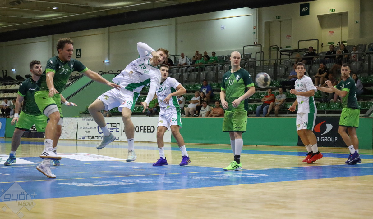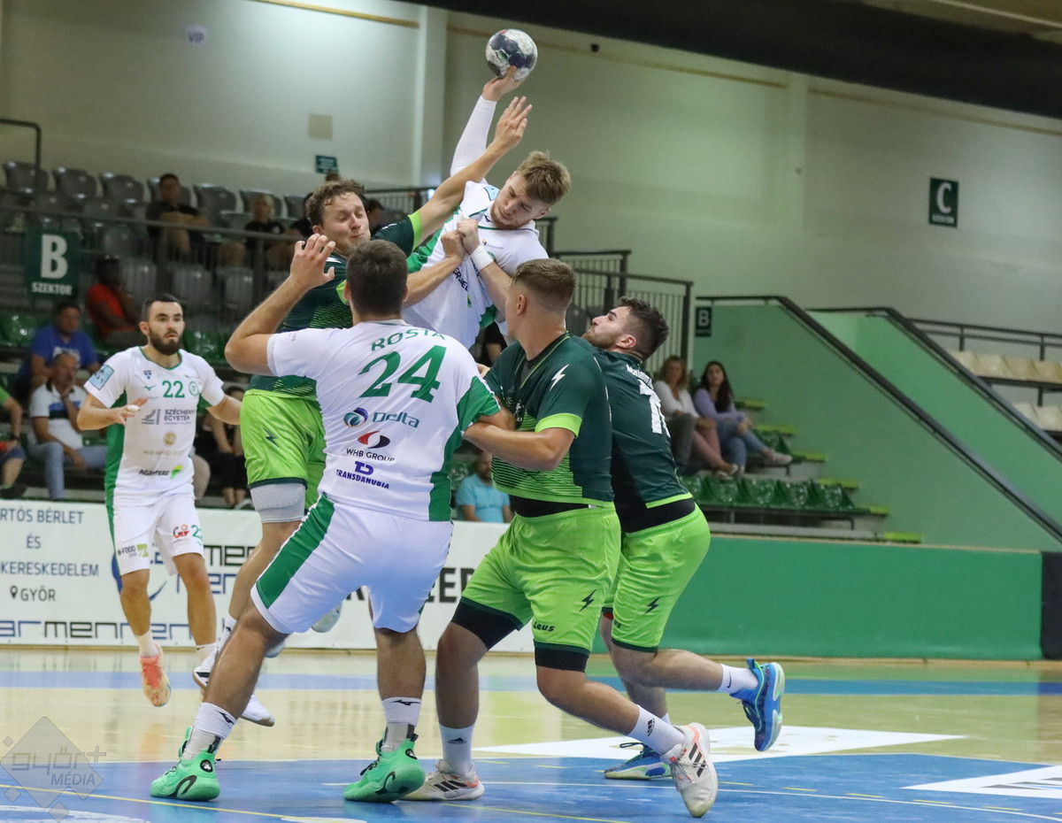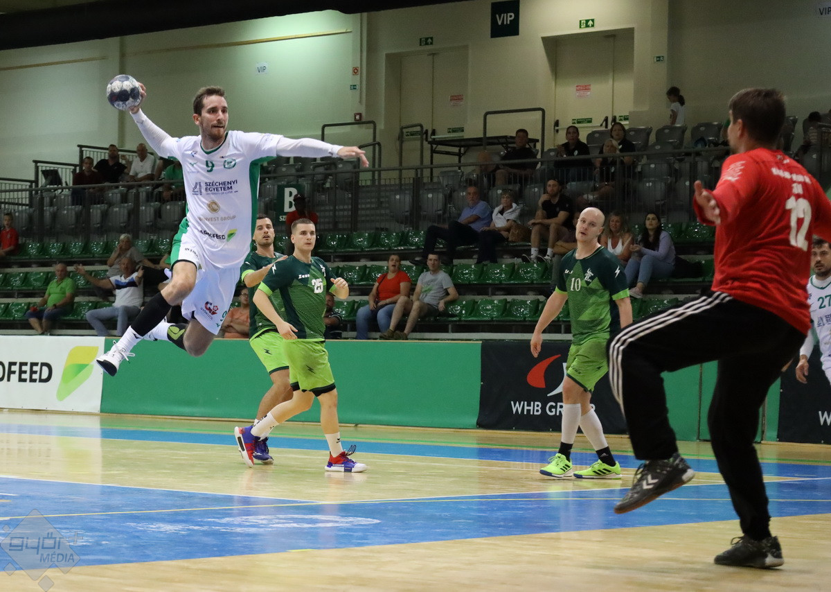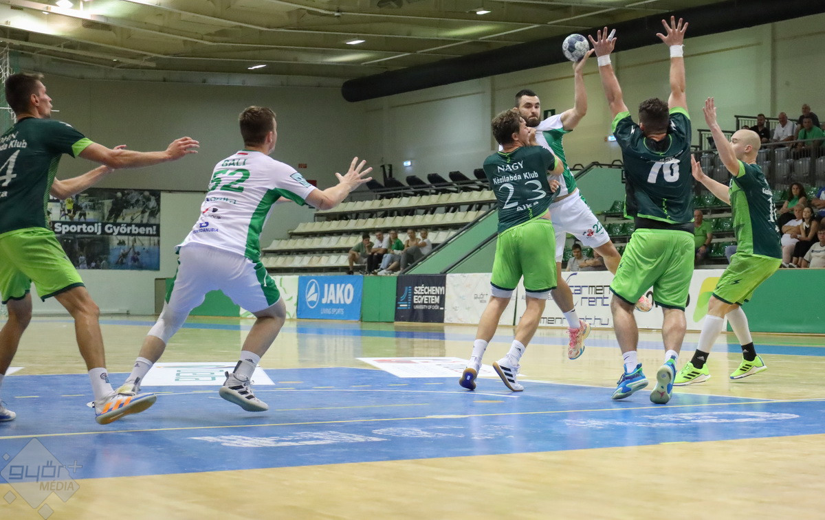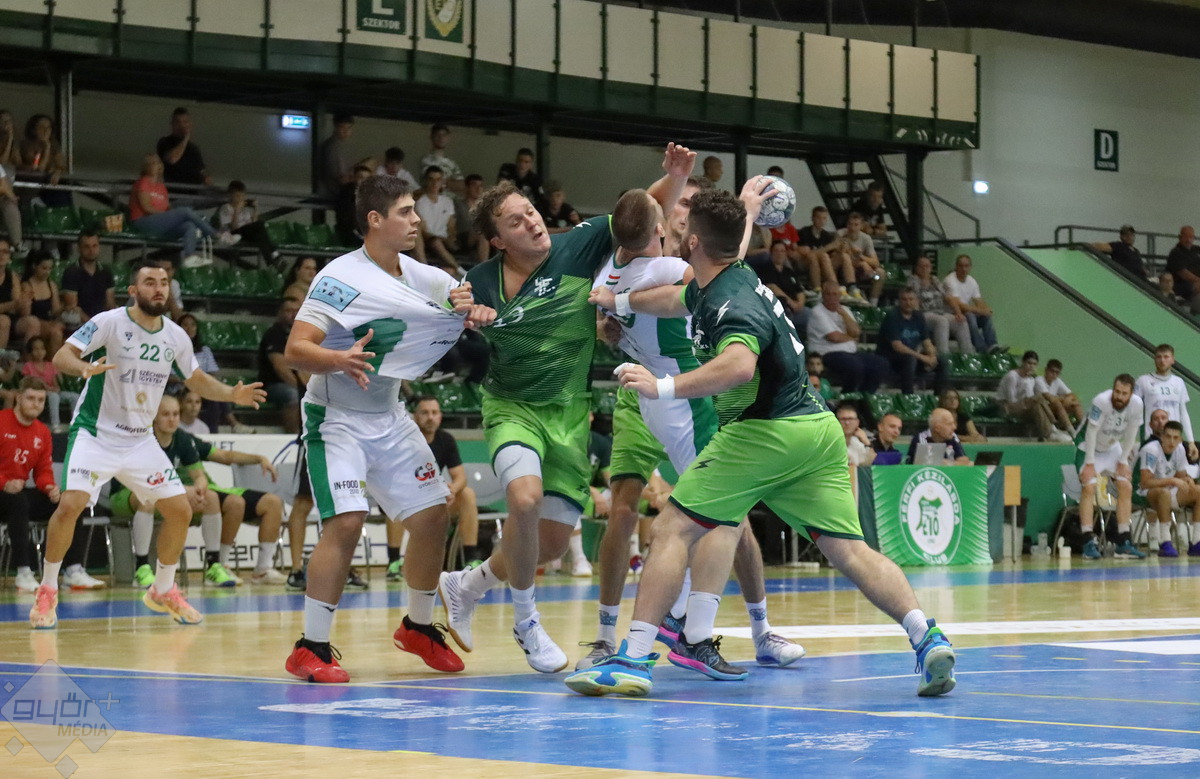 A szezon kezdete előtt a feljutást célul kitűző zöld-fehérek Koncz András találatával szerezték meg a vezetést a második percben, s ezt követően végig vezetve diadalmaskodtak egy rendkívül kiegyenlített, küzdelmes találkozón. A félidőben 14-13-at mutatott az eredményjelző a hazaiak javára. A két együttes a második félidőben is kiegyenlített küzdelmet vívott, de a győriek végig kontrollálták az összecsapást, egyszer sem engedték ki a kezükből a vezetést.