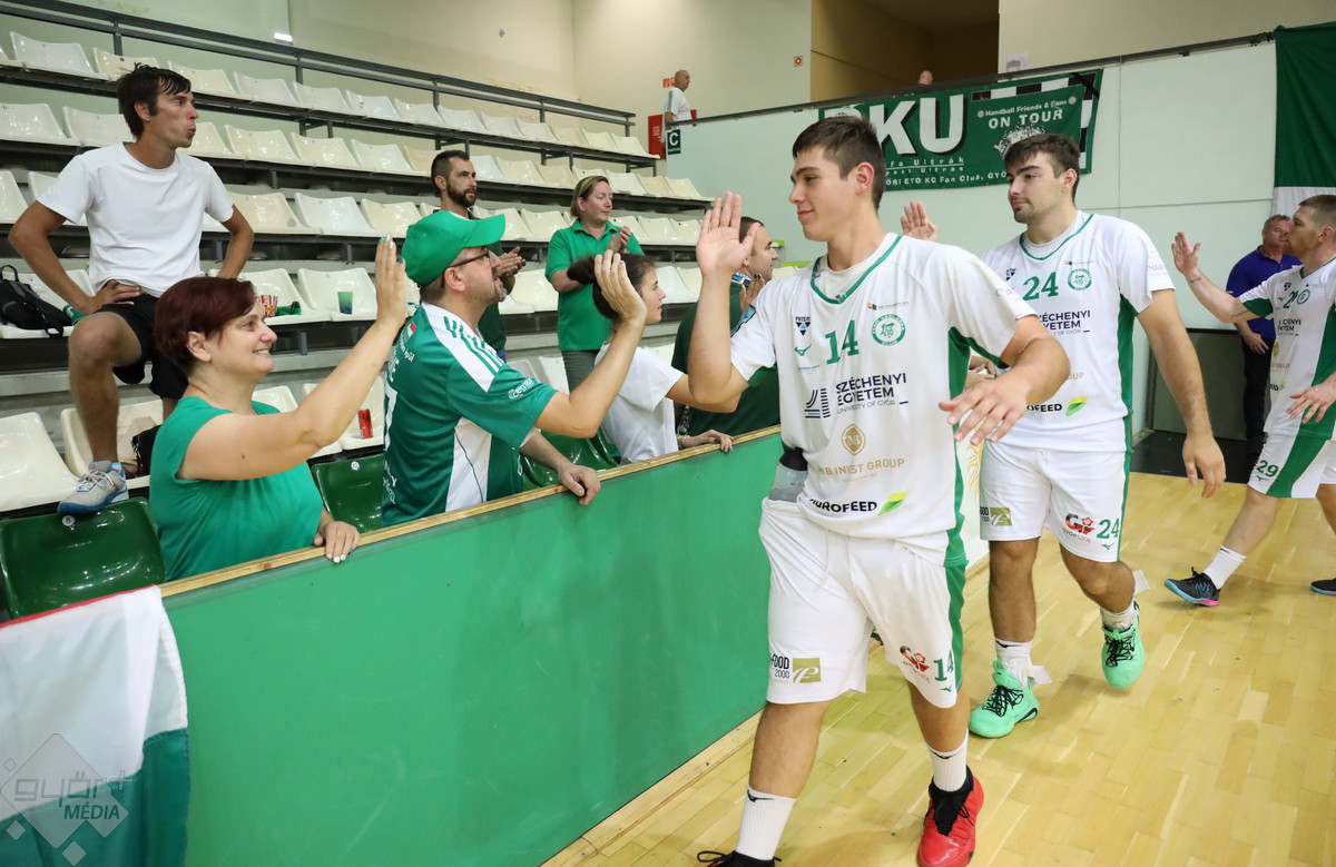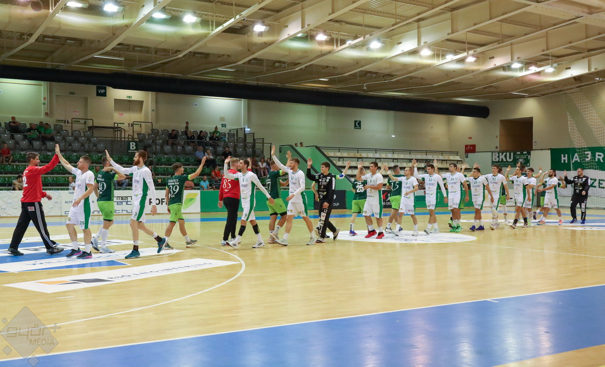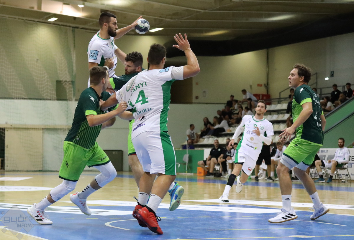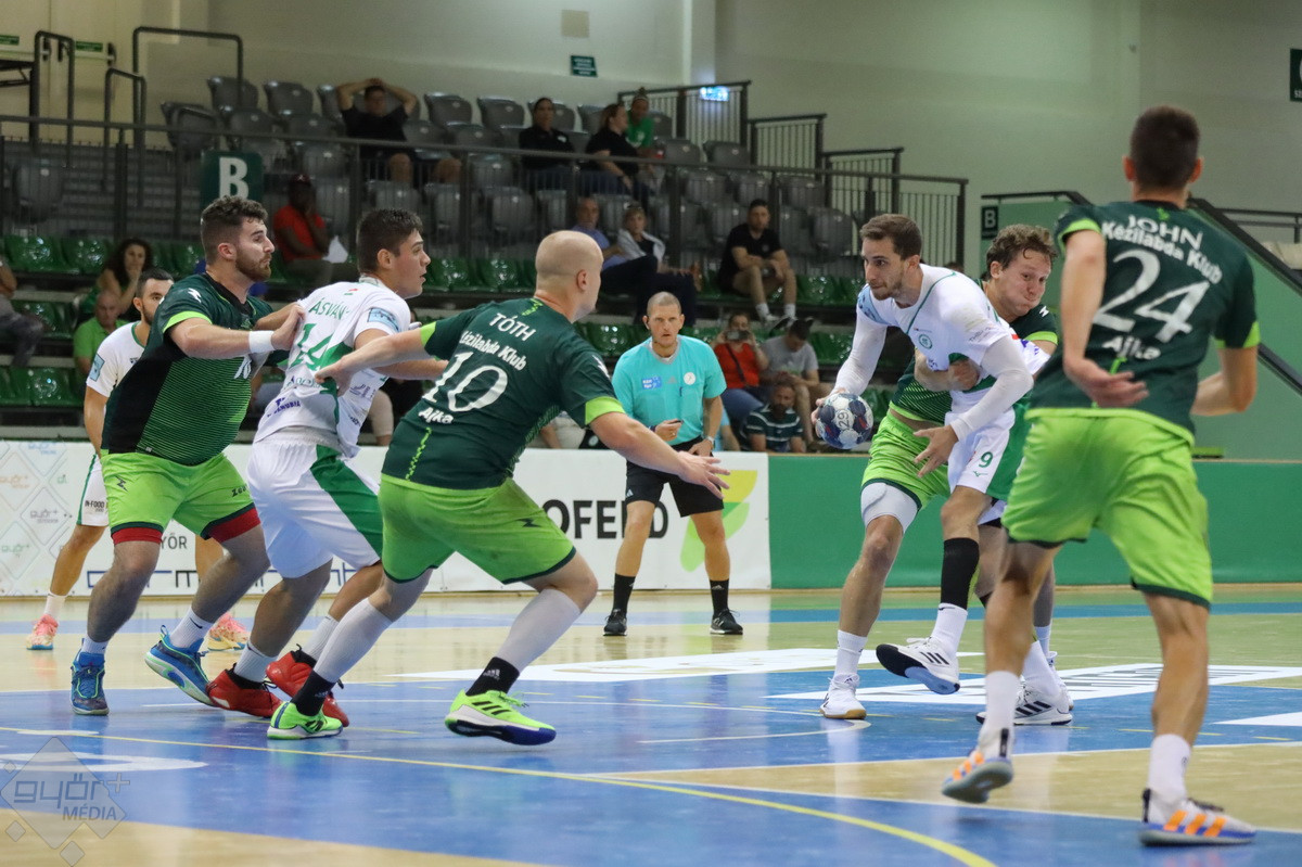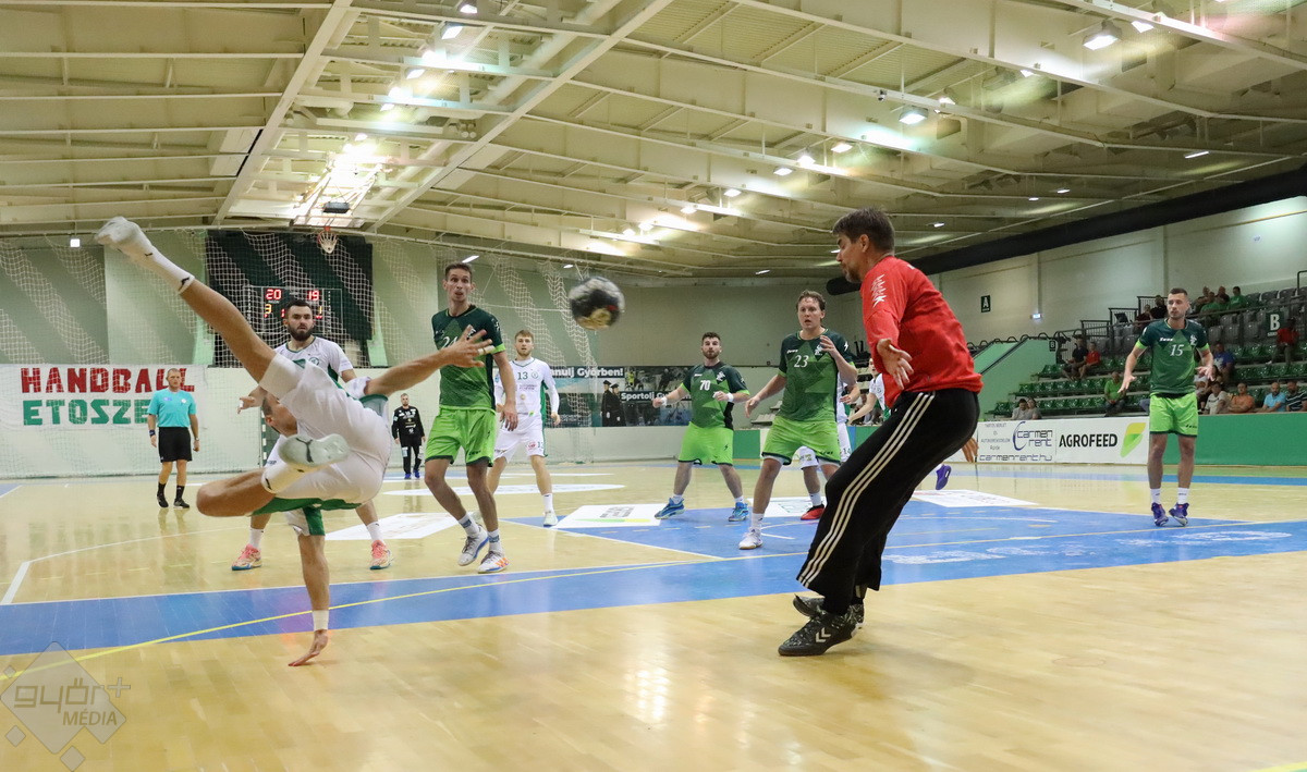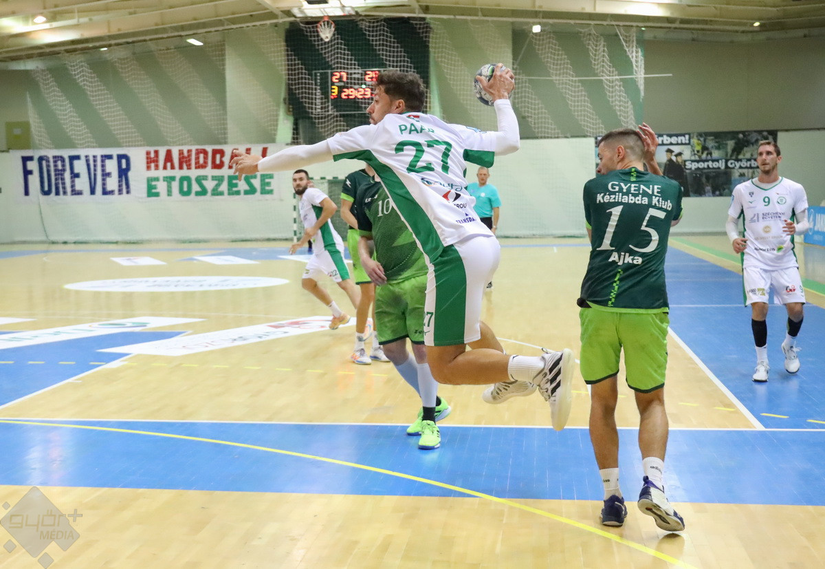 A szezon kezdete előtt a feljutást célul kitűző zöld-fehérek Koncz András találatával szerezték meg a vezetést a második percben, s ezt követően végig vezetve diadalmaskodtak egy rendkívül kiegyenlített, küzdelmes találkozón. A félidőben 14-13-at mutatott az eredményjelző a hazaiak javára. A két együttes a második félidőben is kiegyenlített küzdelmet vívott, de a győriek végig kontrollálták az összecsapást, egyszer sem engedték ki a kezükből a vezetést.