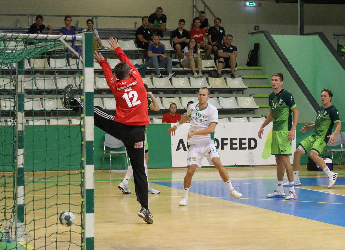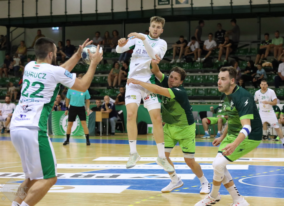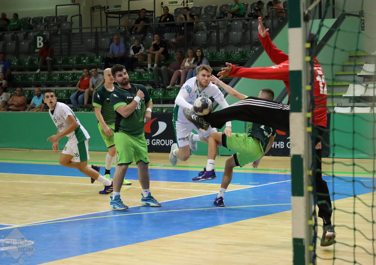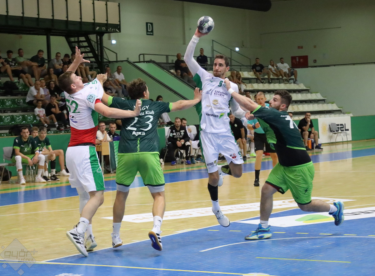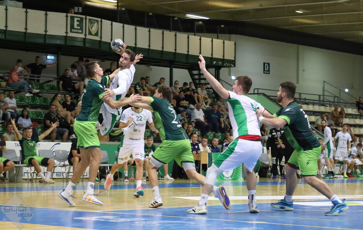 A szezon kezdete előtt a feljutást célul kitűző zöld-fehérek Koncz András találatával szerezték meg a vezetést a második percben, s ezt követően végig vezetve diadalmaskodtak egy rendkívül kiegyenlített, küzdelmes találkozón. A félidőben 14-13-at mutatott az eredményjelző a hazaiak javára. A két együttes a második félidőben is kiegyenlített küzdelmet vívott, de a győriek végig kontrollálták az összecsapást, egyszer sem engedték ki a kezükből a vezetést.