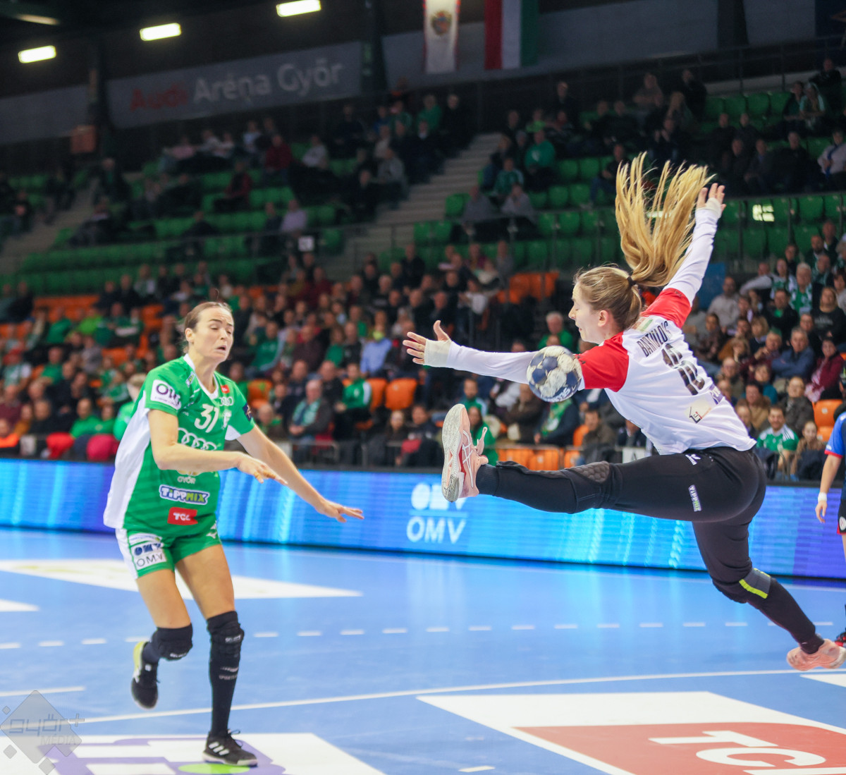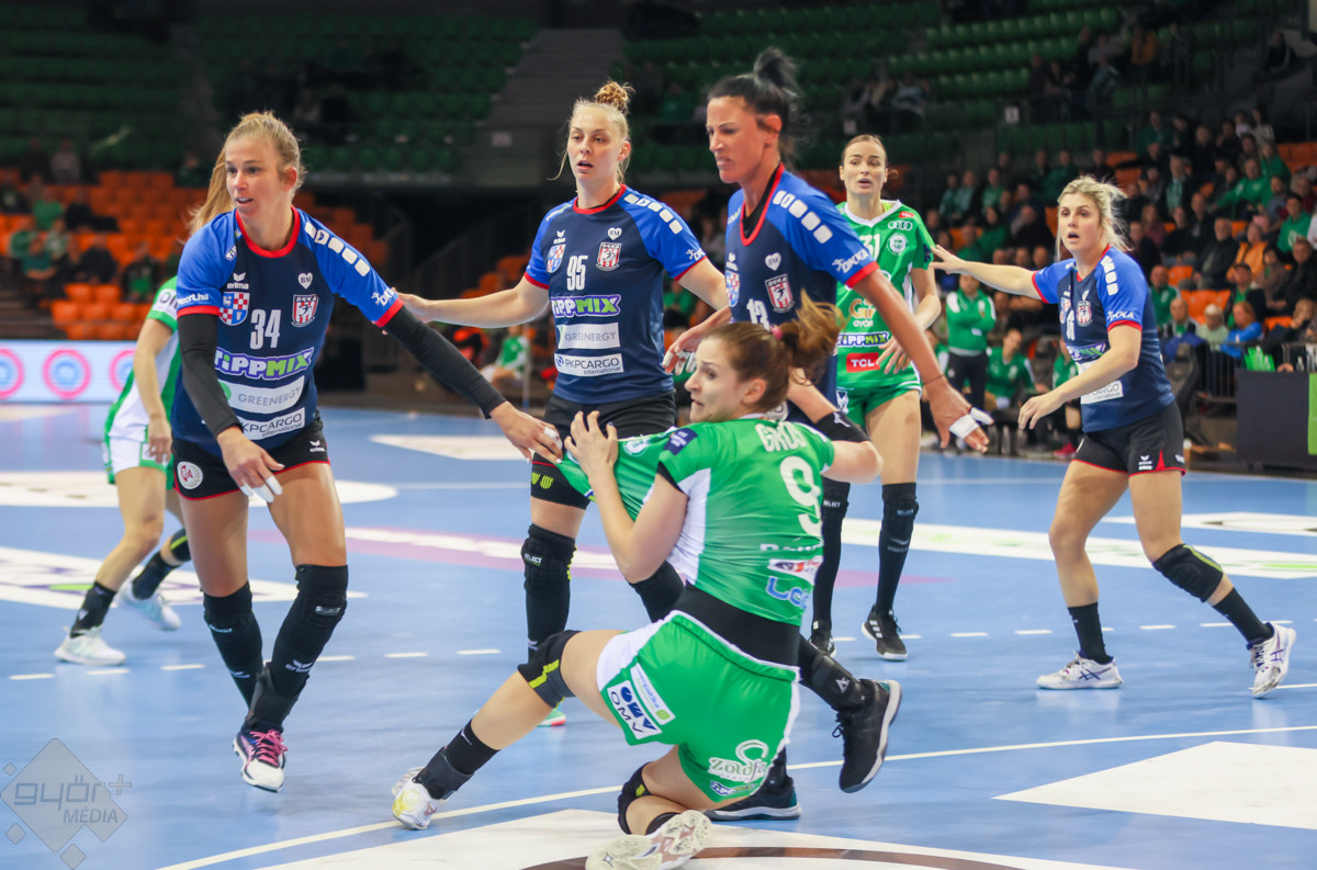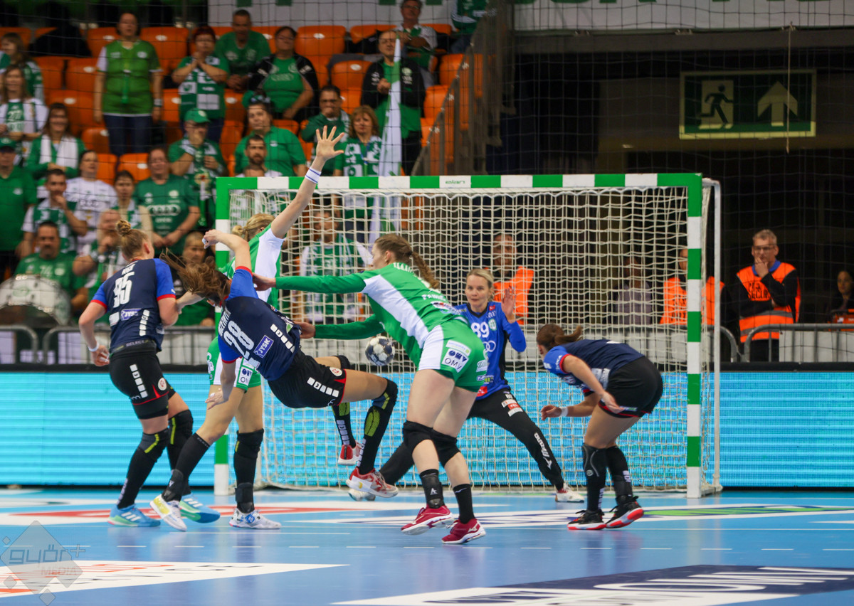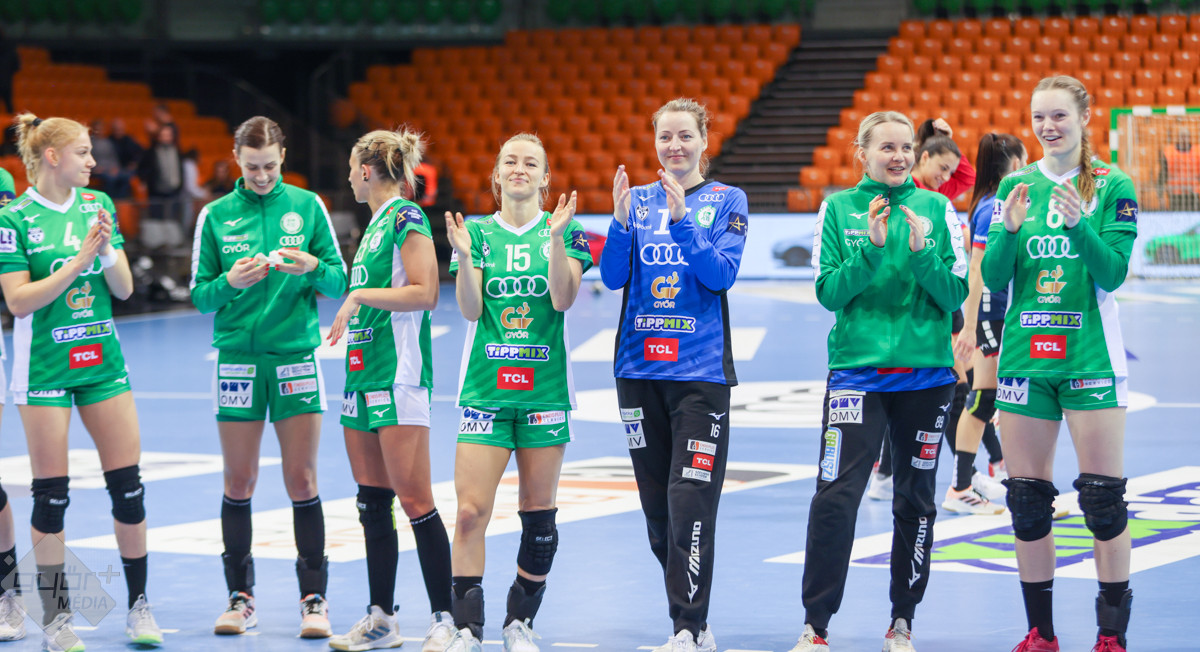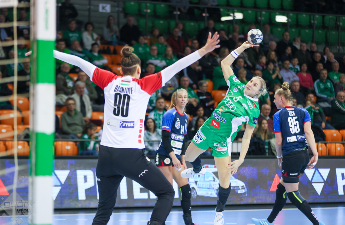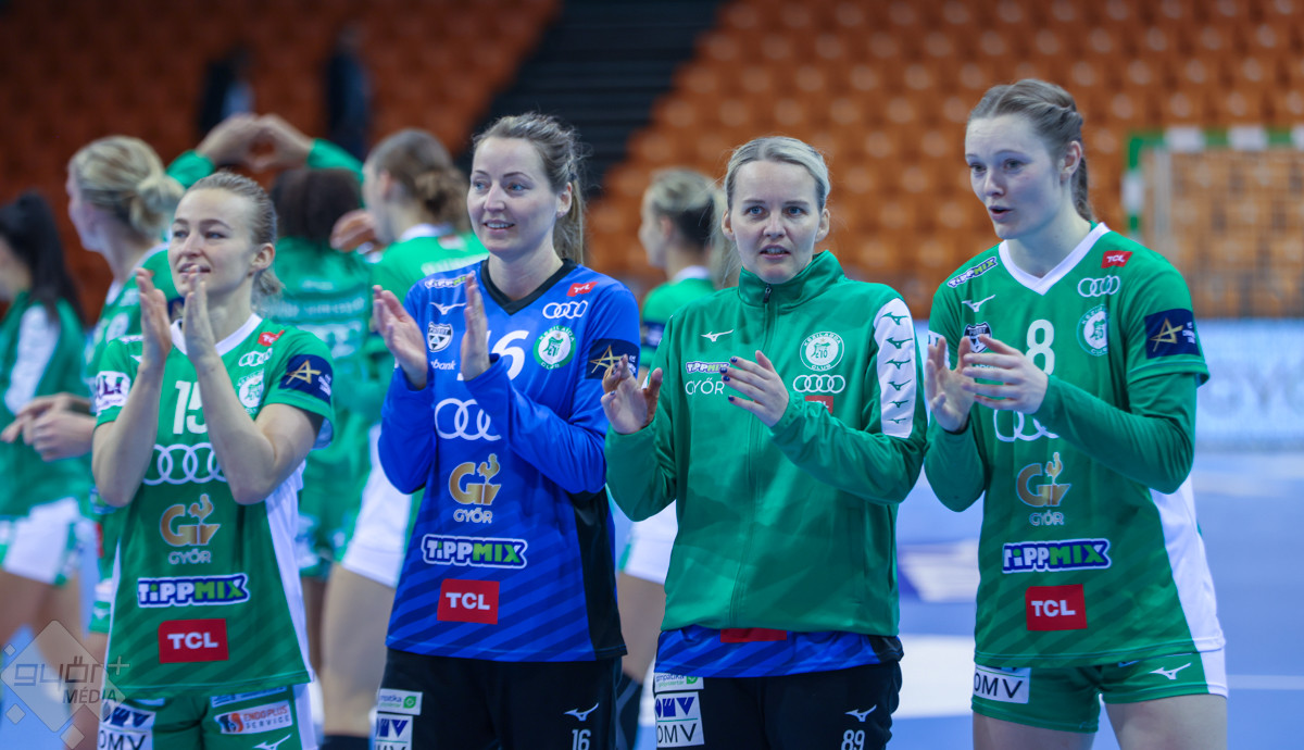Ambros Martín vezetőedző a Faluvégi, Gros, Oftedal, Broch, Nze Minko, Schatzl hatossal és Tofttal a kapuban kezdte meg a mérkőzést. A találkozó első két gólját ugyan a vendégek szerezték, de egy 7 – 0-ás sorozatnak köszönhetően 7 – 2-re vezetett a győri csapat a tizedik percben. Sandra Toft védéseinek és a gyors lerohanásoknak köszönhetően a 18. percben már tíz góllal vezetett a csapat (13 – 3). A félidő utolsó tíz percére tizenhárom gólos győri előnnyel fordultak a csapatok (16 – 3). A győri kapuban hitetlen formában védett Sandra Toft, aki a 26. percben 75%-os hatékonysággal hárította a vendégek lövéseit. Az első félidő végül 22 – 7-es győri vezetéssel zárult.