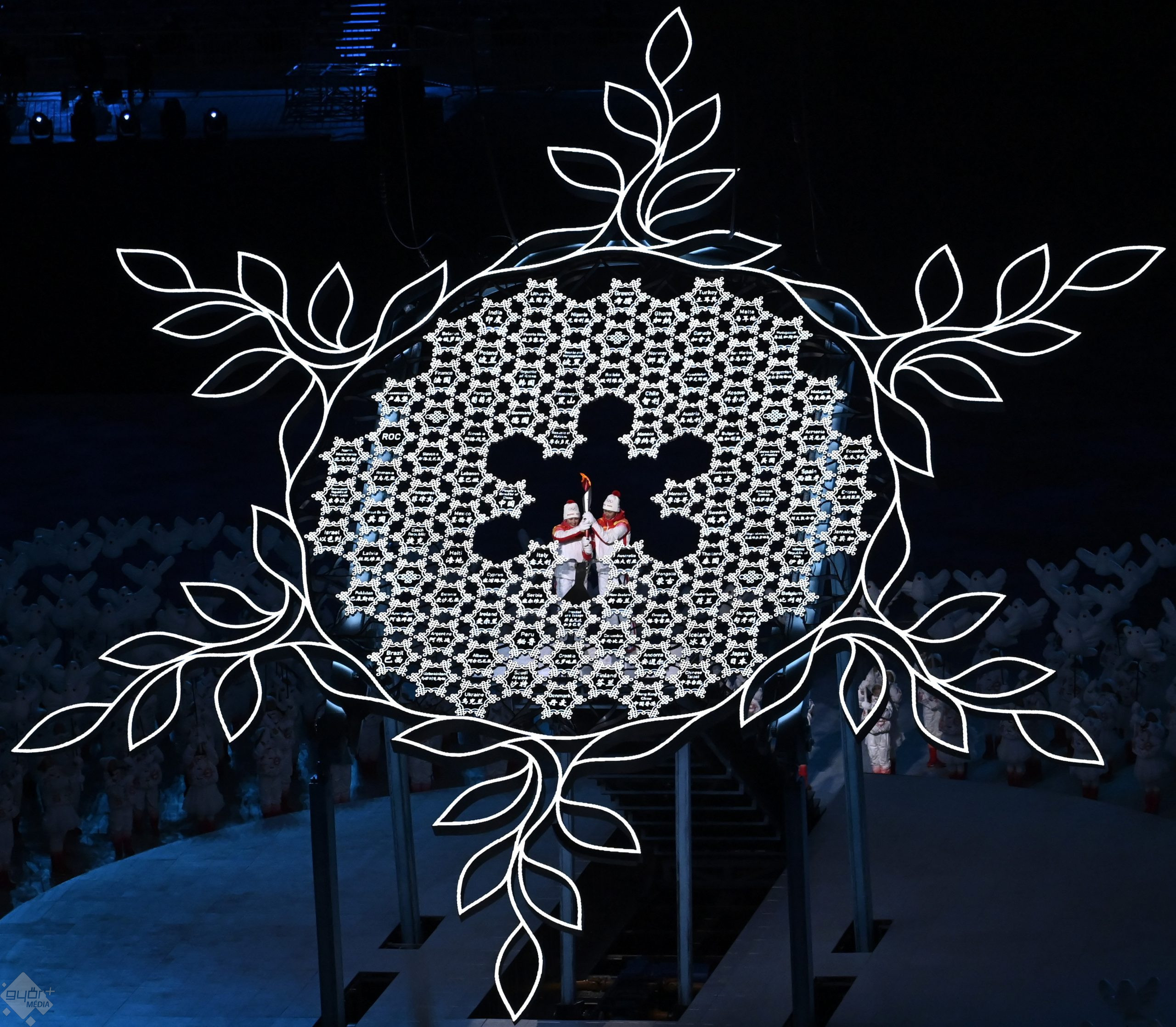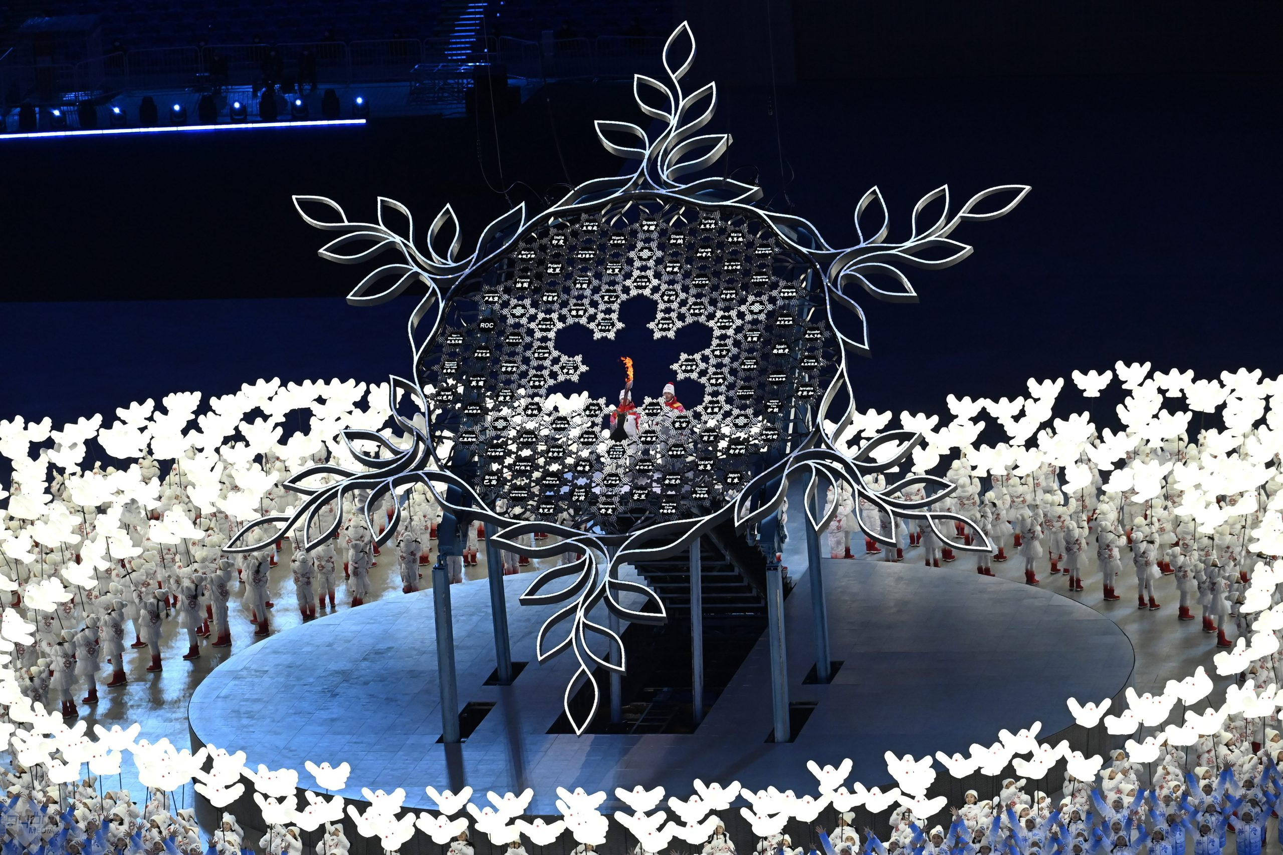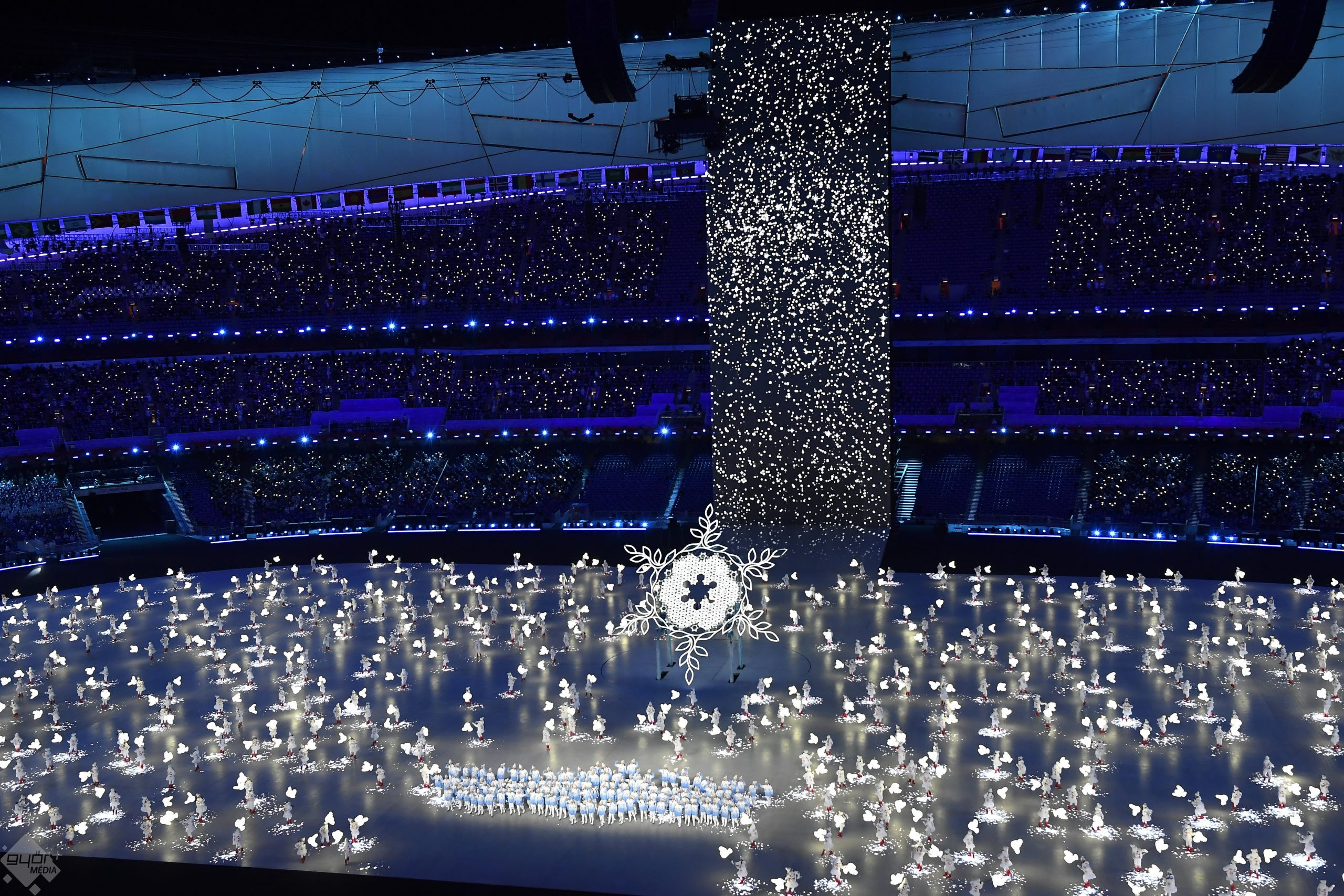 A sportolók bevonulása előtt jégből készült hatalmas méretű olimpiai ötkarikát emeltek a bejárat elé. Az olimpiai lobogót a program vége felé hat hazai téli sportoló hozta, köztük Csang Hung, Kína első olimpiai bajnok gyorskorcsolyázója, Han Hsziao-peng síakrobata, Kína első “havas” olimpiai bajnoka, Sen Hszüe műkorcsolyázó, a sportág első kínai ötkarikás bajnoka, és Luo Cse-huan, aki gyorskorcsolyázóként még 1963-ban megszerezte Kína első világbajnoki címét téli sportágban. Az olimpiai esküt Vang Csiang sífutó, Liu Csia-jü hódeszkás, valamint egy bíró és egy edző mondta el. Az olimpiai lángot a stadionban generációk adták át egymásnak, legendás, különböző évtizedben született kínai sportolók, végül a 2000-es években született Dinigeer Jila-mucsiang és Csao Csia-ven vitte fel a lángot egy emelvényre, majd egy hópehely közepébe került. A fenntarthatóság jegyében az utolsó fáklya lett az olimpiai láng, ami ott fog égni február 20-ig.