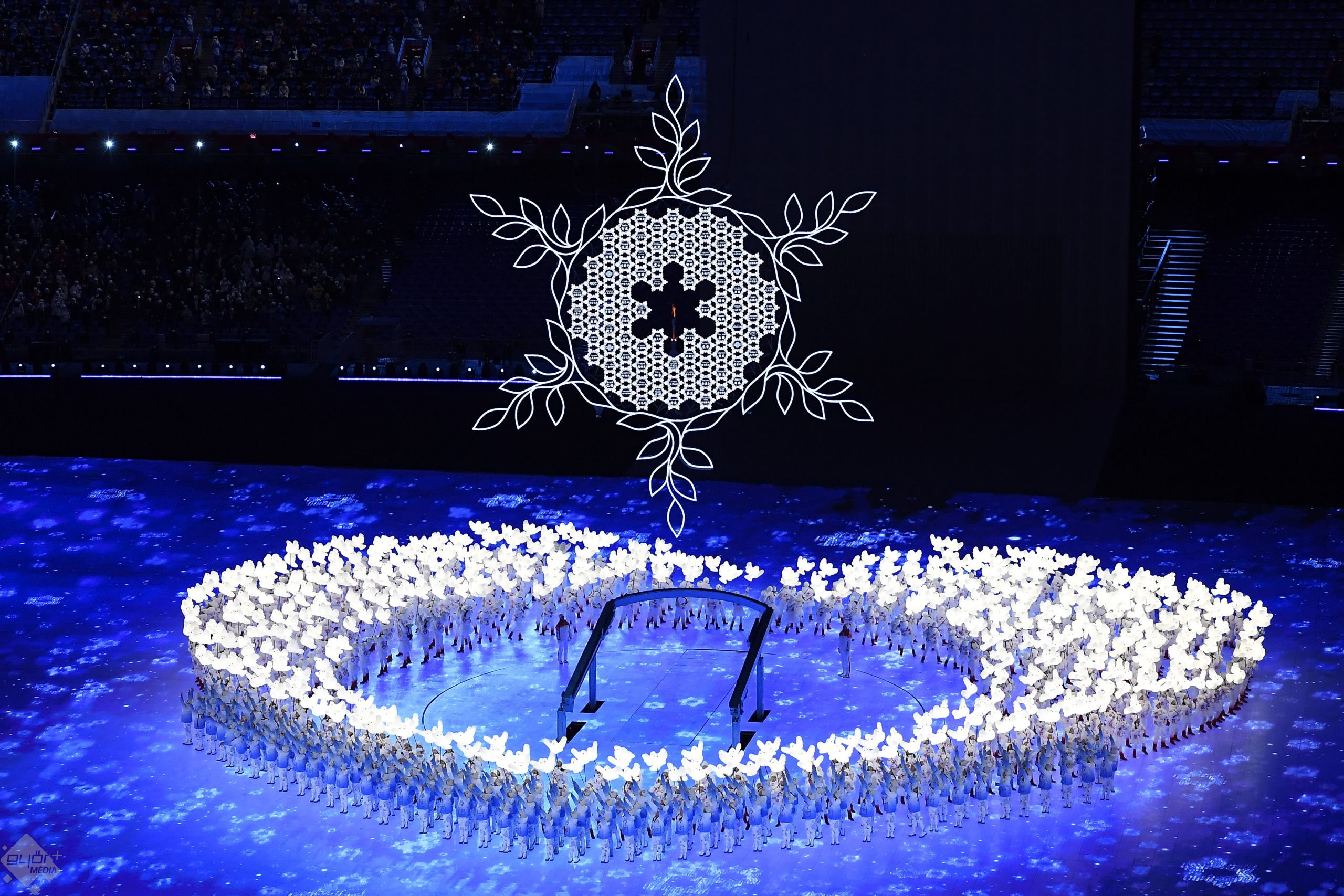 A helyi idő szerint péntek esti ünnepségre a pandémia miatt a 80 ezres Madárfészekbe mintegy 25 ezer nézőt engedtek be, a programot pedig lerövidítették kétórásra. A mínusz öt fokos hidegben rendezett megnyitó központi eleme a Li Paj kínai költő közel 1300 éves versében megénekelt hópehely volt. Már a küldöttségek bevonulásakor is hópelyhekben jelenítették meg az országok nevét, majd a színes műsor is arról szólt, hogy nincs két egyforma hópihe, de voltaképpen mégis mindegyik hasonló. A műsor mintegy háromezer szereplőjének 95 százalékát tizenévesek tették ki.