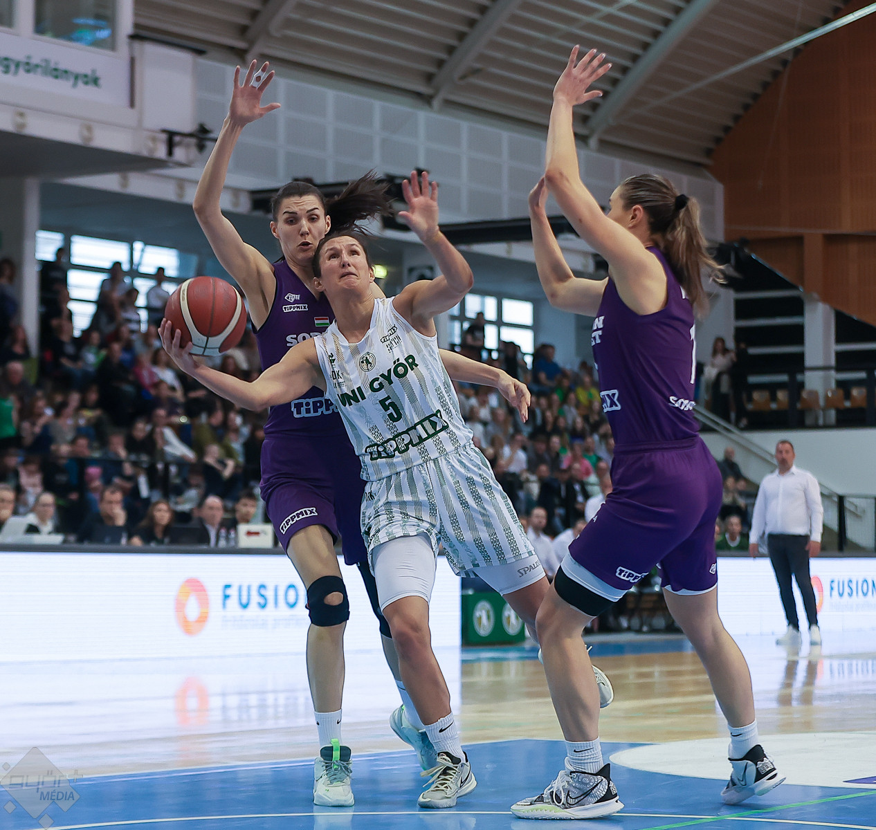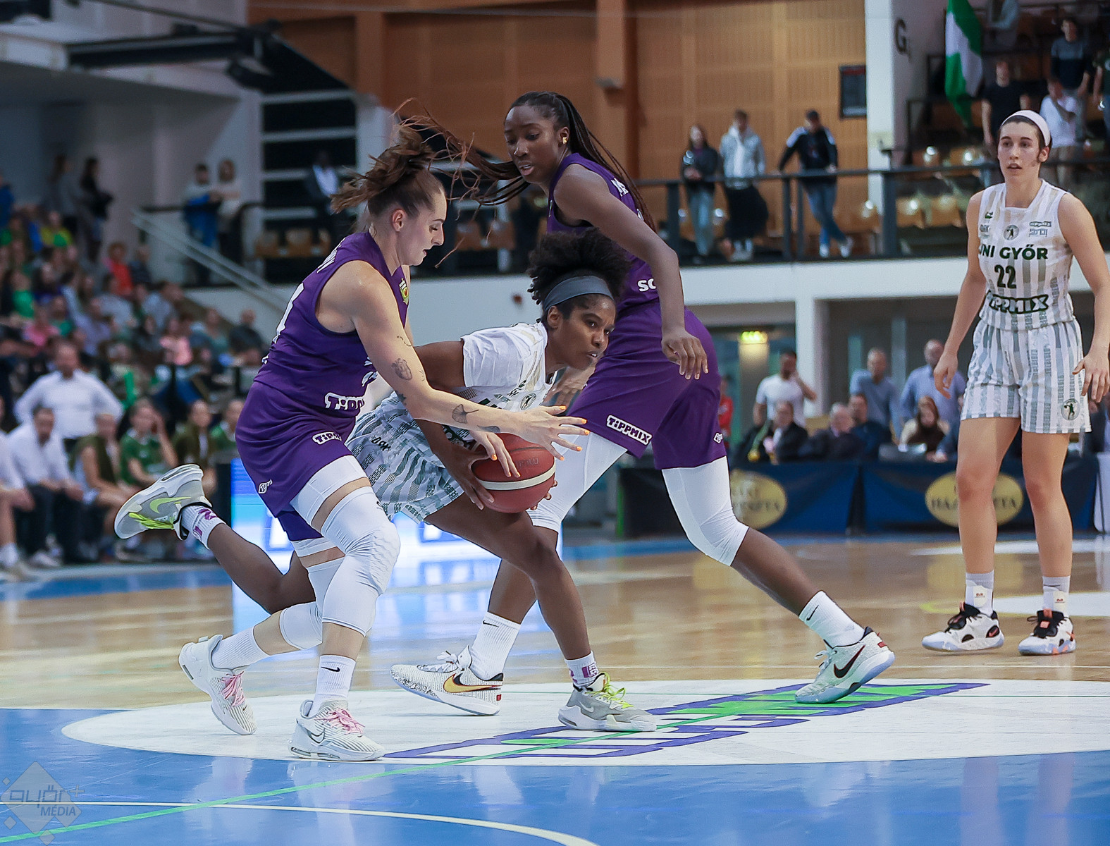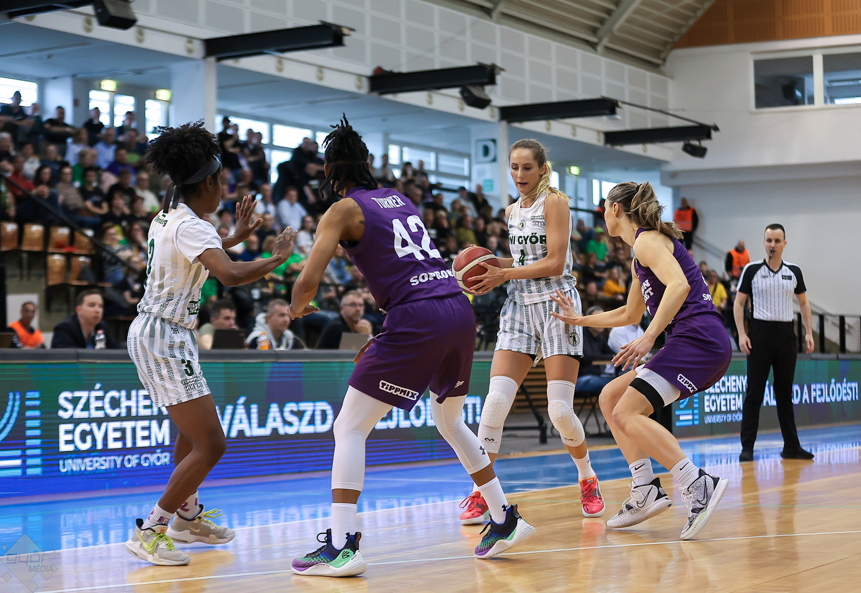 Szoros volt a második negyed, pontról pontra hajszolta a vendégeket a Győr, 15 perc játék után 48-50 volt az állás. A vezetést nem sikerült átvenni, de érezhetően felpörgött a győriek játéka.