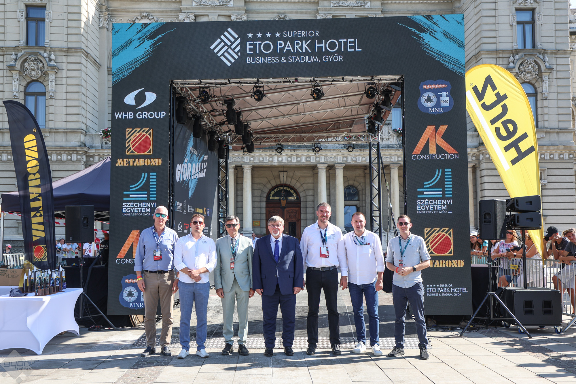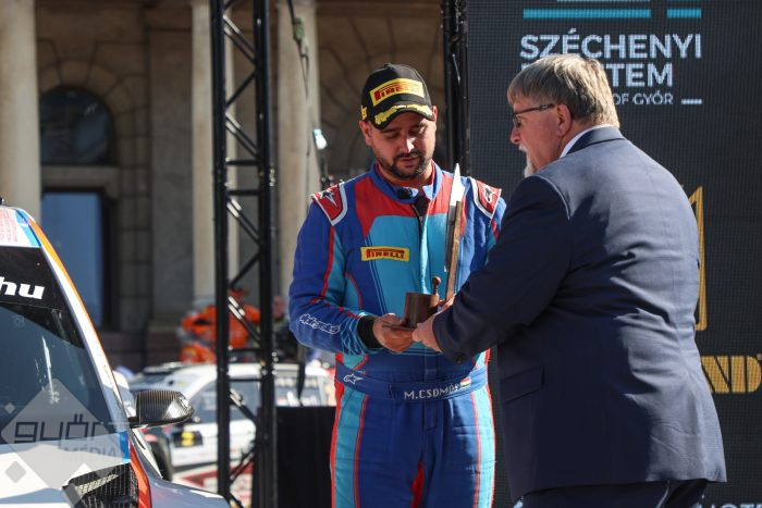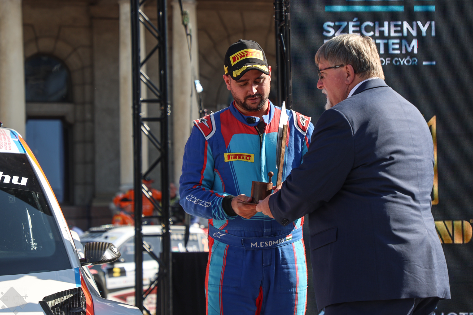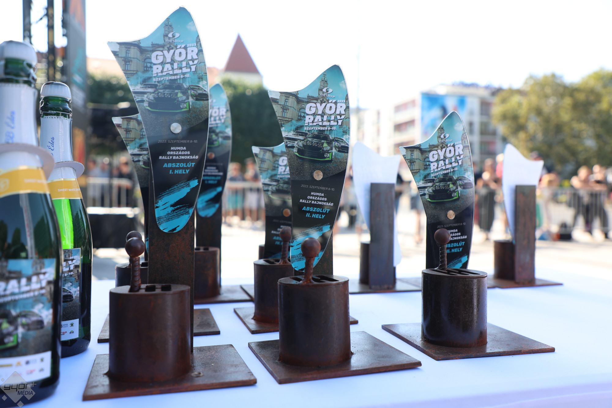 Az eredményhirdetésre a városháza előtti téren került sor, ahol elsőként a legmagasabb kategória versenyzői vehették át díjaikat. Az első helyezett páros Csomós Miklós “Mixi” és navigátora Bán Viktor, akik Dr. Dézsi Csaba Andrástól, Győr polgármesterétől vehették át a legjobbaknak járó elismerést.