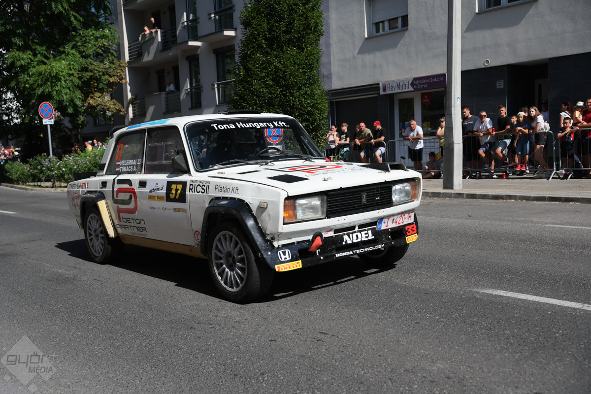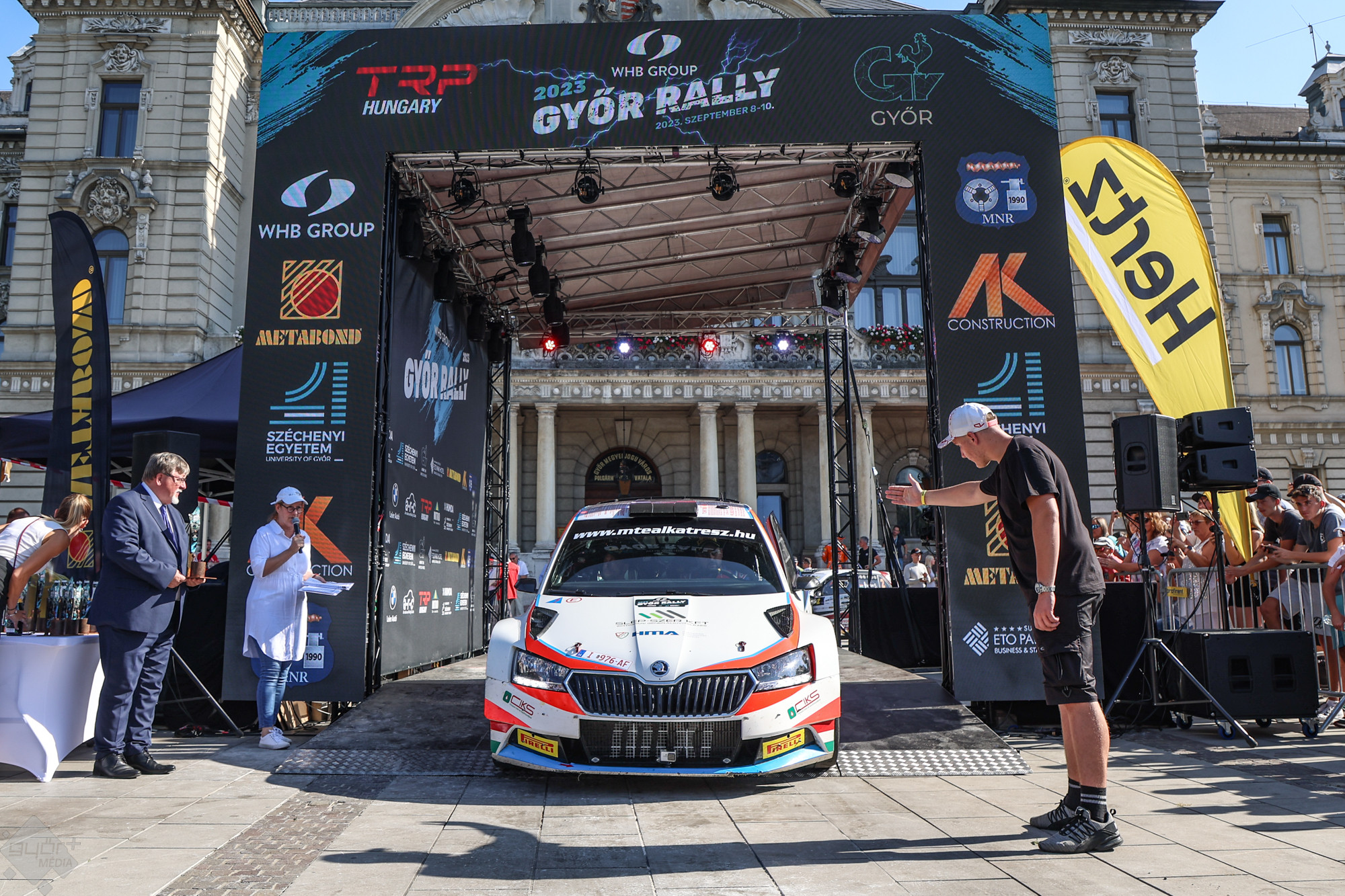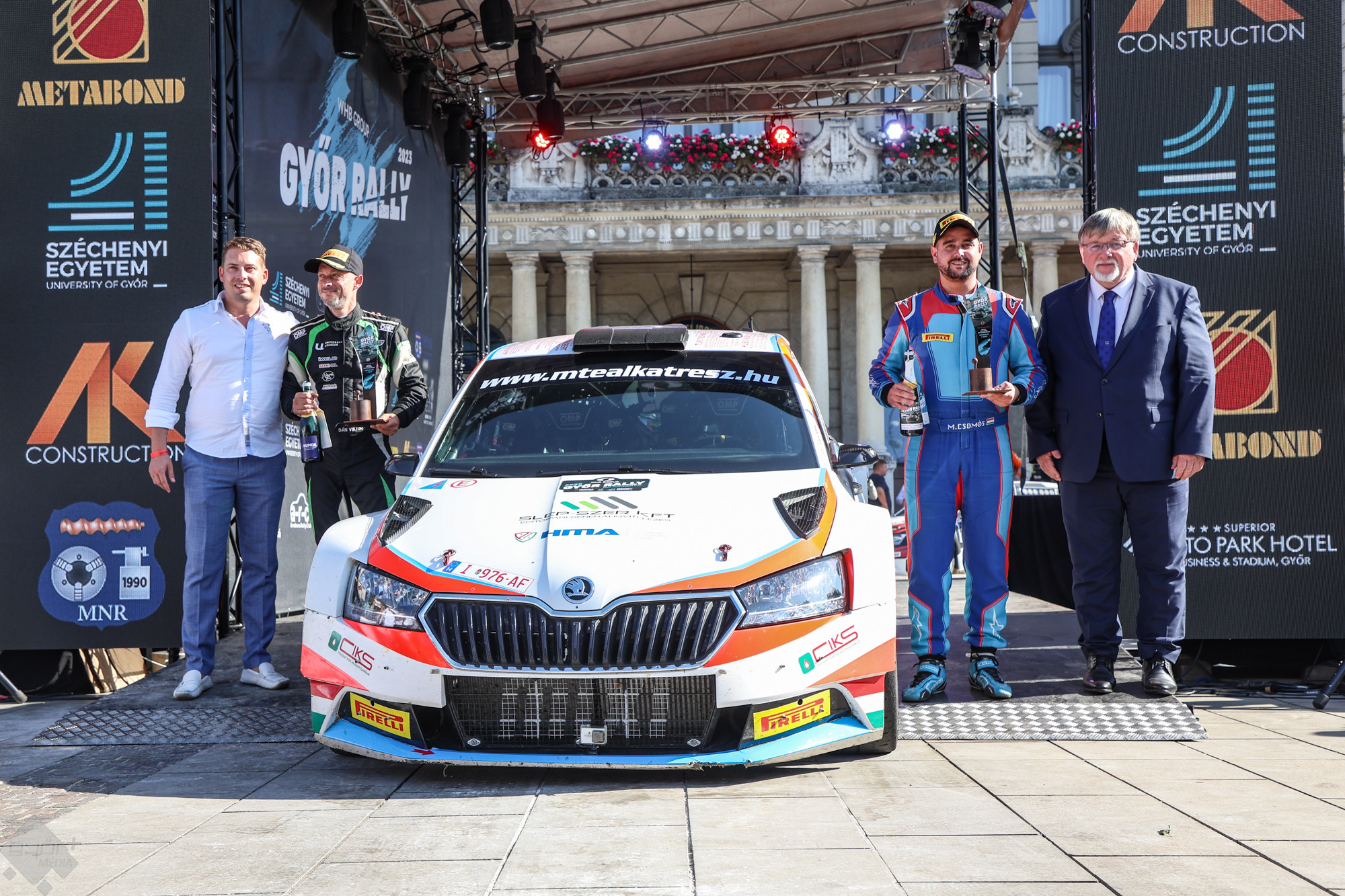 Az eredményhirdetésre a városháza előtti téren került sor, ahol elsőként a legmagasabb kategória versenyzői vehették át díjaikat. Az első helyezett páros Csomós Miklós “Mixi” és navigátora Bán Viktor, akik Dr. Dézsi Csaba Andrástól, Győr polgármesterétől vehették át a legjobbaknak járó elismerést.