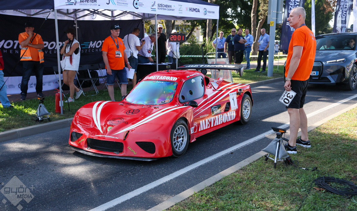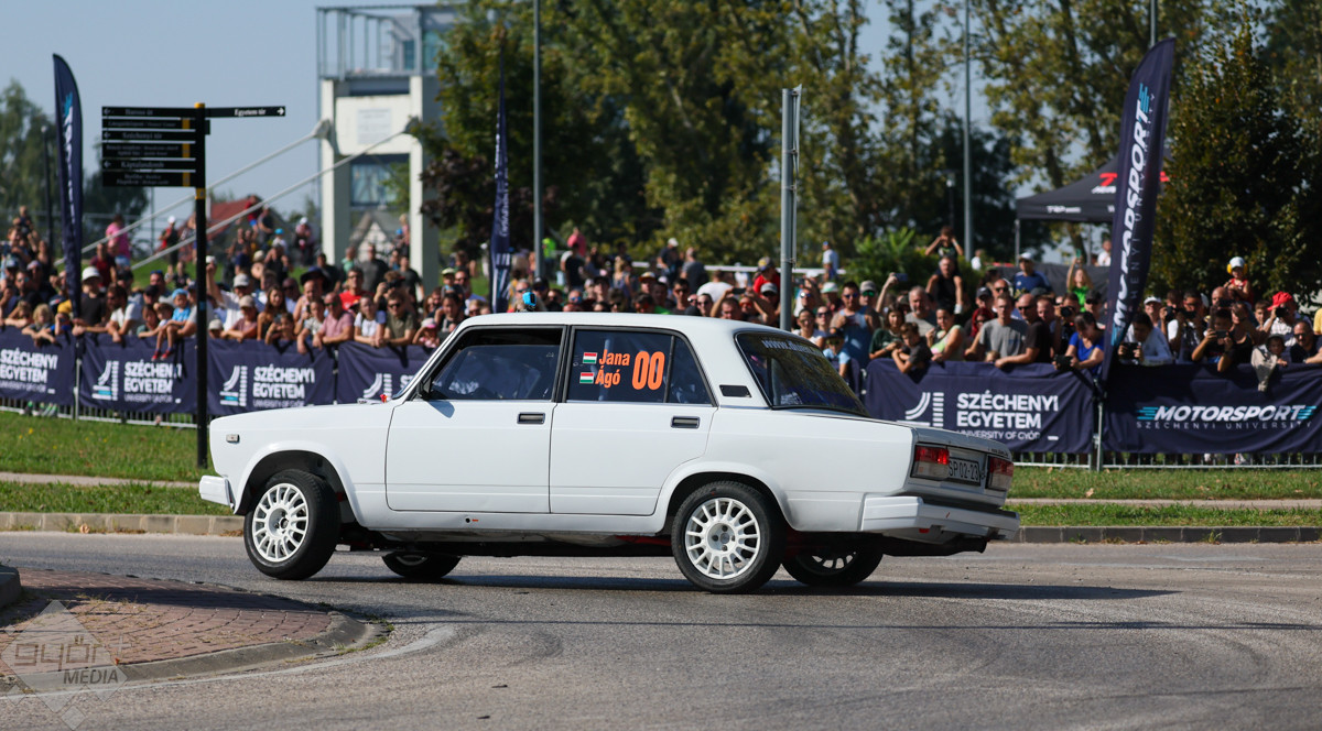 Majd kicsivel 11 óra után a sportág profi autósai is a startvonal mögé álltak, hangosan bőgtek a motorok, izzott az aszfalt a csikorgó gumiktól.