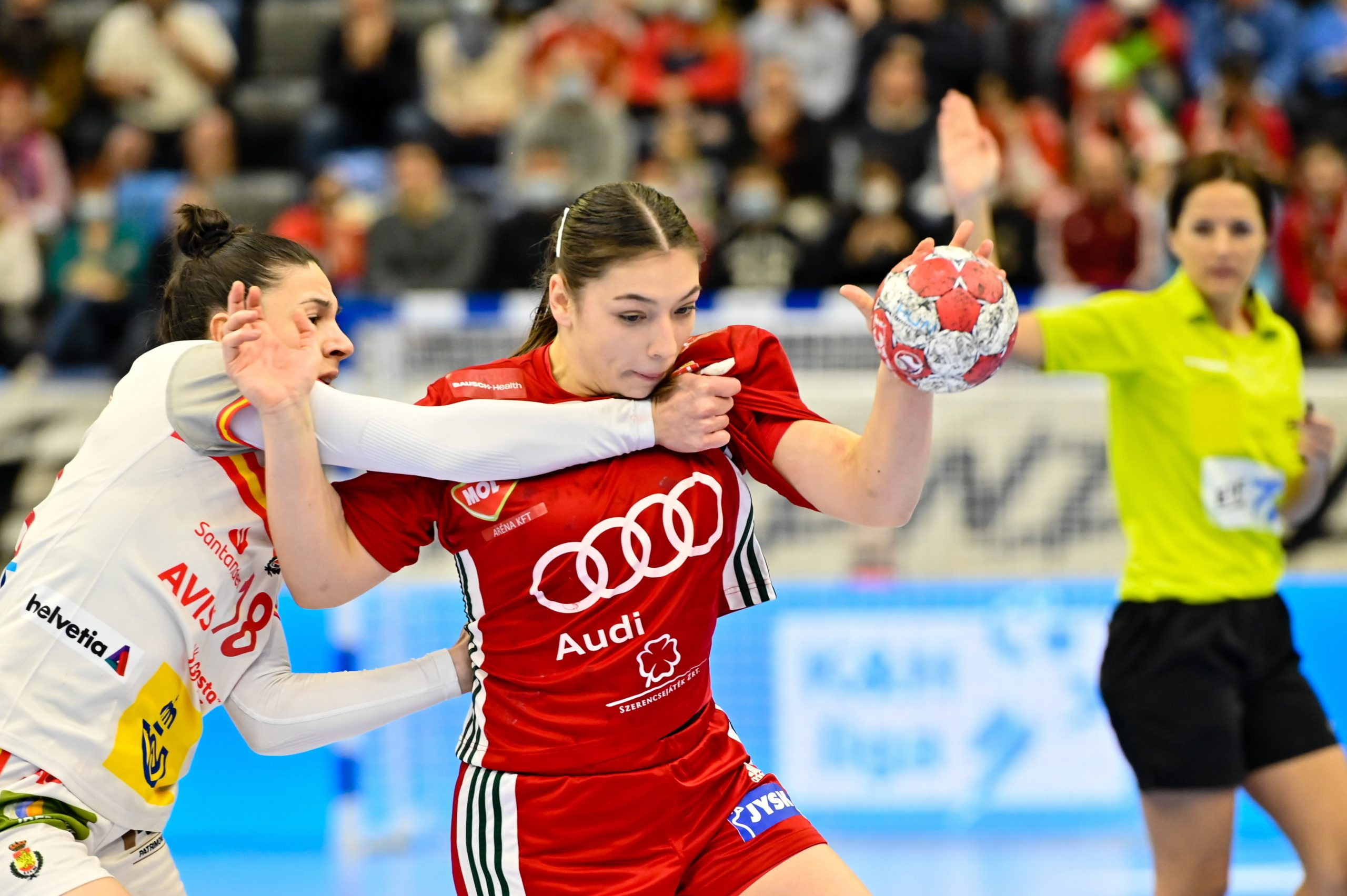 A meccs előtti összetartáson részt vett 22 játékos közül Kajdon Blankát, Szikora Melindát, Kovács Anettet, Albek Annát, Tóvizi Petrát és Fodor Csengét nem nevezte a keretbe Golovin Vlagyimir szövetségi kapitány. A túloldalon Nerea Pena, Carmen Martín, Alexandrina Cabral Barbosa, Almudena Rodríguez, Carmen Campos és Kaba Gassama is hiányzott.
