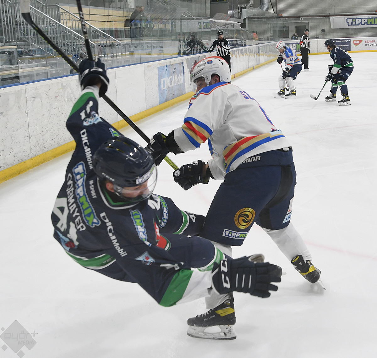 A második harmadban nagy iramot diktált a fehérvári bázisú, ám hazai meccseit Győrben játszó gárda, és a 24. percben Császár Hunor közelről kotorta be a pakkot a védővel a nyakán. Emberhátrányban is a Titánok veszélyeztettek, előbb kapusavat lőttek, majd végül sikerült egyenlíteni is: Balogh Bence egy lecsorgót vágott a kapuba.