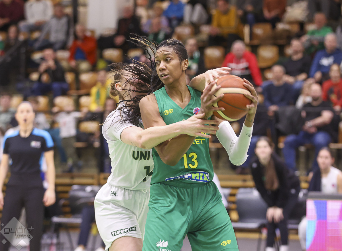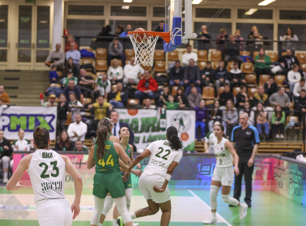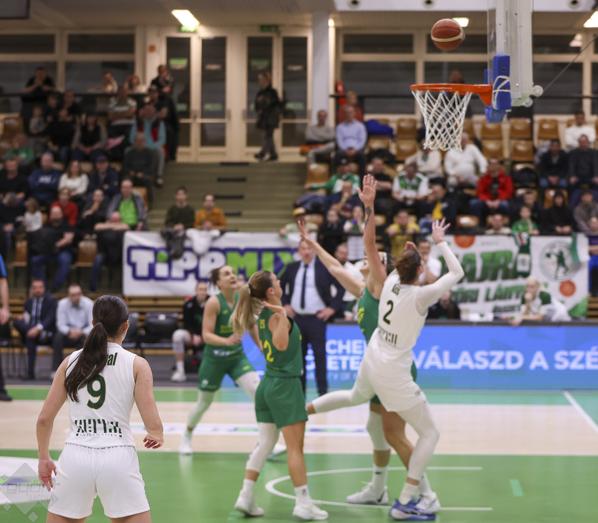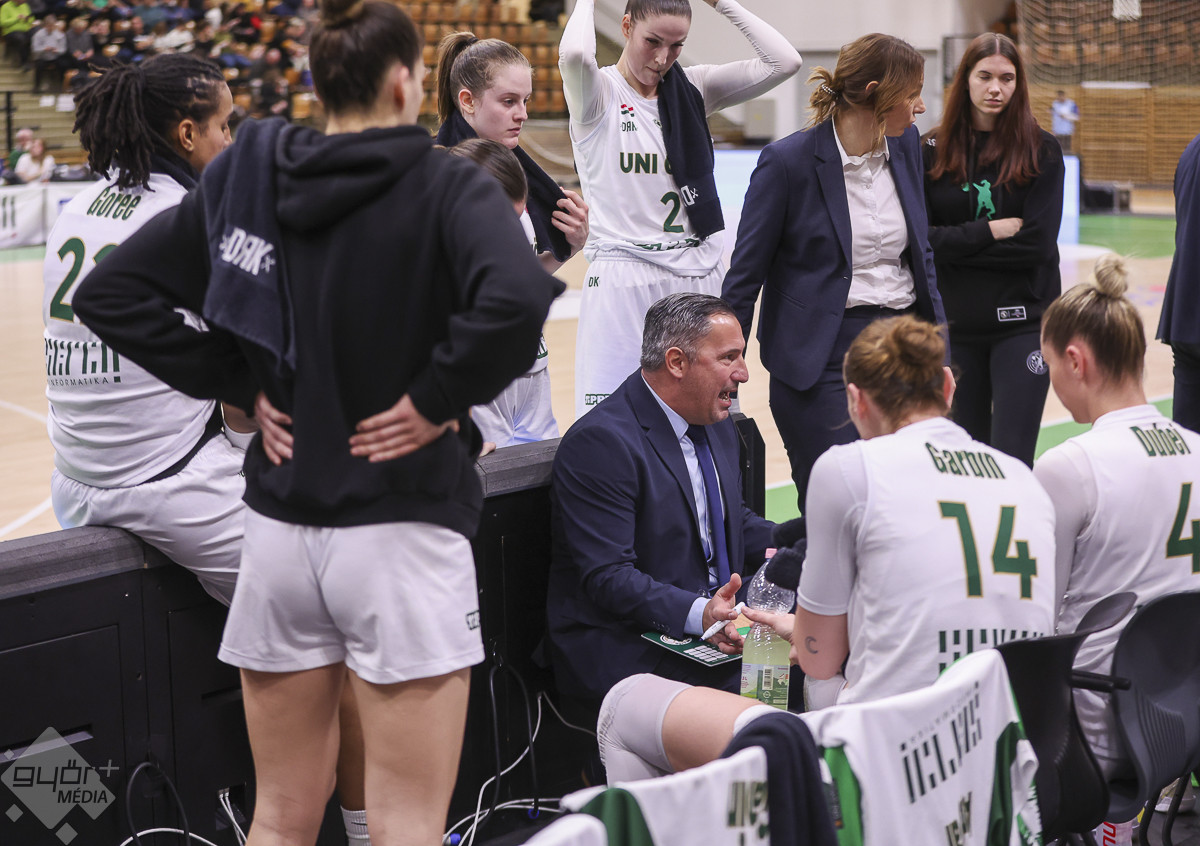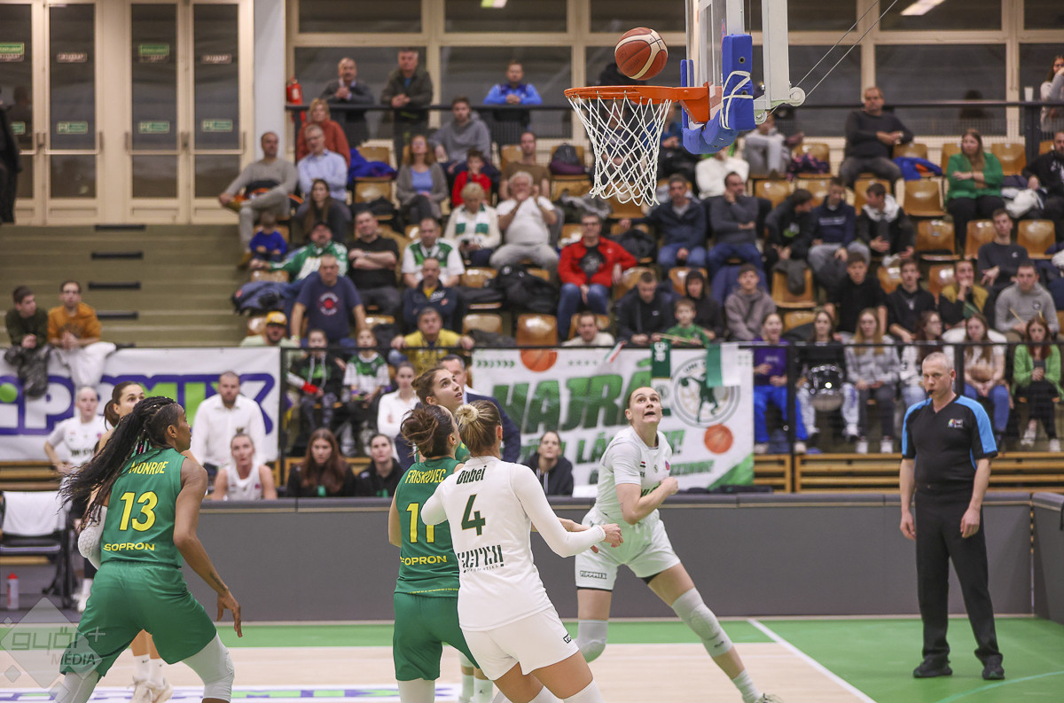 Wentzel kosarával tíz pontra zárkóztunk fel az utolsó tíz perc elején. A lélektani határon belülre azonban nem tudtunk kerülni (34. perc: 66–77). Nagy hajrát indítottunk, nem sokkal később már csak hét pont volt a különbség (70–77). Bachhal szemben tripladobásnál szabálytalankodtak, az első büntetőt kihagyta, a másik kettőnél higgadt maradt (36. perc: 72–77). Friskovec lohasztotta le kicsit a kedélyeinket egy triplával, de Kiss Virág hasonló értékűvel hozta vissza a reményt (75–80), majd ugyanő volt megint eredményes (77–80). Ki más, mint Friskovec dobott megint hármast. Másfél perccel a vége előtt 79–83-nál támadhattunk, Dombai ki is használta Reid lemaradását (81–83). Gáspár Dávid időt kért. A végjátékban Brooks dobott trojkát, majd ő szerzett labdát, és harcolt ki faultot, eldöntve ezzel a párharc első felvonását (81–87). A vége hatpontos vereség lett, a jövő heti, soproni visszavágón nem teljesen reménytelen a fordítás, de ahhoz sokkal jobb teljesítményre lesz szükség.”