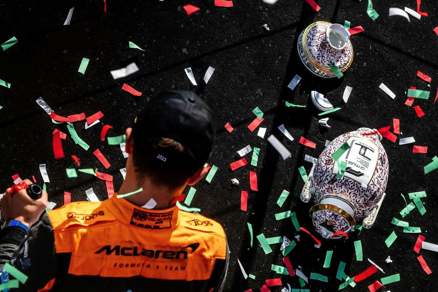 Lando Norris mellett senki sincs biztonságban. A McLaren versenyzőjének már a Forma–1 előtt szokása volt, hogy az üveg földhöz ütésével indít pezsgőszokőkutat. Két hete Silverstone-ban is ezt csinálta, akkor csak ledöntött egy trófeát, a mostani Magyar Nagydíjon viszont komoly anyagi kárt is okozott a sajátos módszerével.