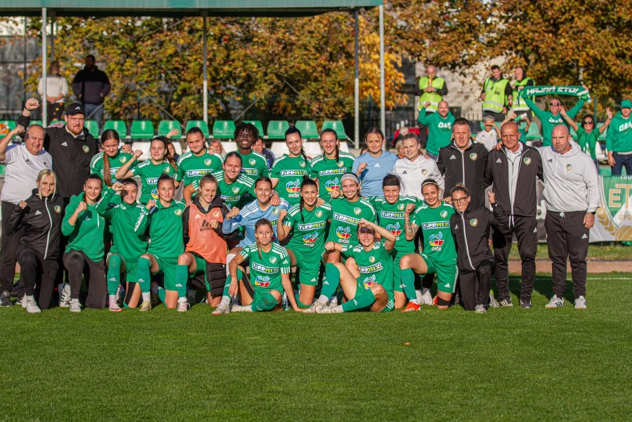 Remek találatokkal, közte bombagólokkal aratott fölényes, 5-0-ás győzelmet a PMFC otthonában a női együttes. Mivel a szezonból már csak egy forduló van hátra, a győri lányok előnye pedig hat pont a riválisai előtt, immáron kijelenthető, hogy története során először, őszi bajnok az ETO!