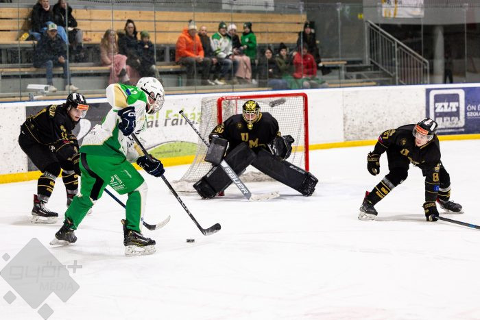 Szombaton, hazai pályán várt rájuk az utolsó, egyben legnagyobb kihívás: a tabellát vezető, tavalyi bajnok besztercebányai UMB csapatát fogadták a Győri Jégsport Központban. Kiemelkedően magas színvonalú, teljesen egyenrangú összecsapást láthatott a közönség, amit az UMB csak egy utolsó perces találattal tudott megnyerni 2:1 arányban.