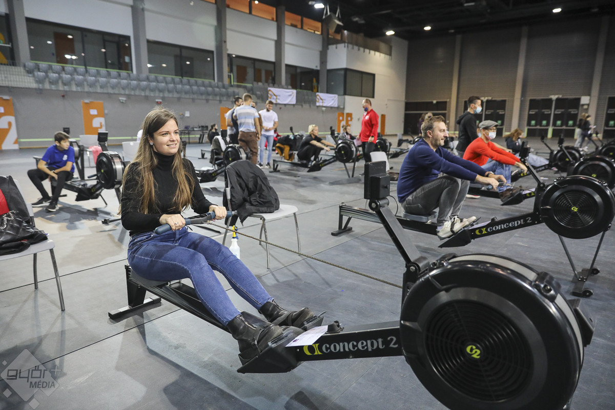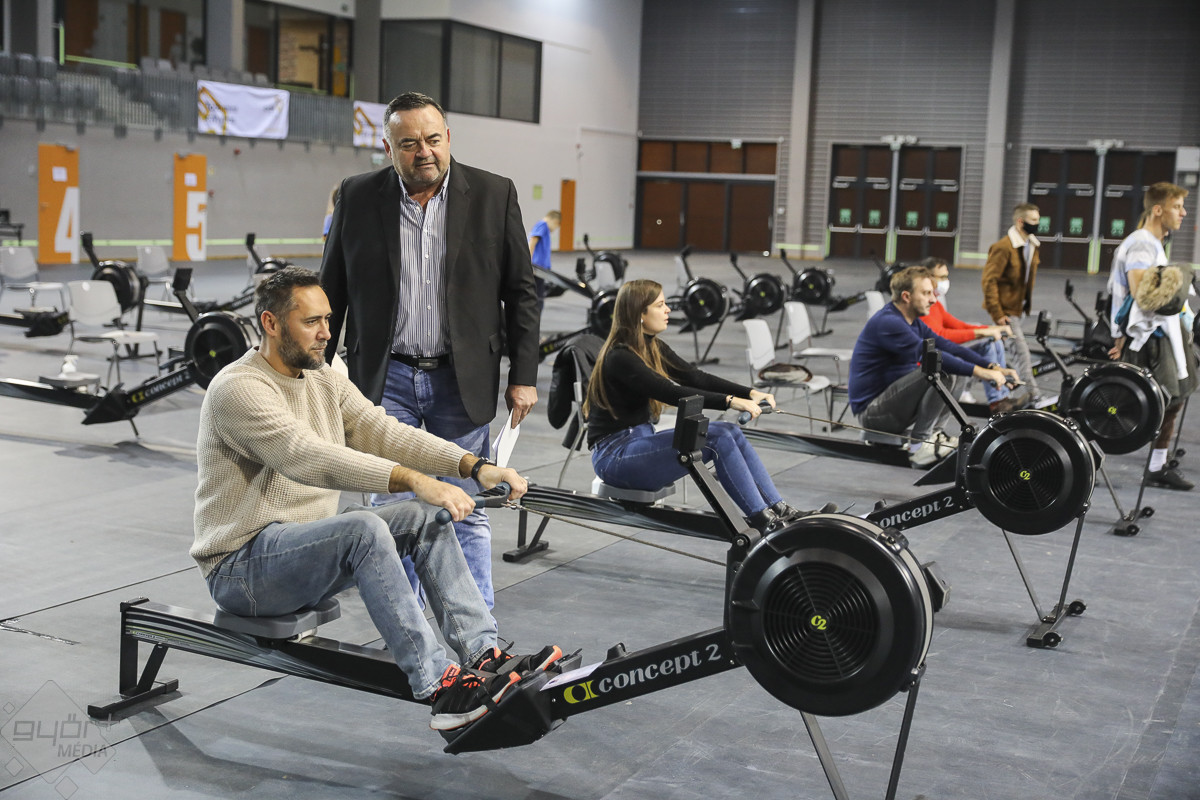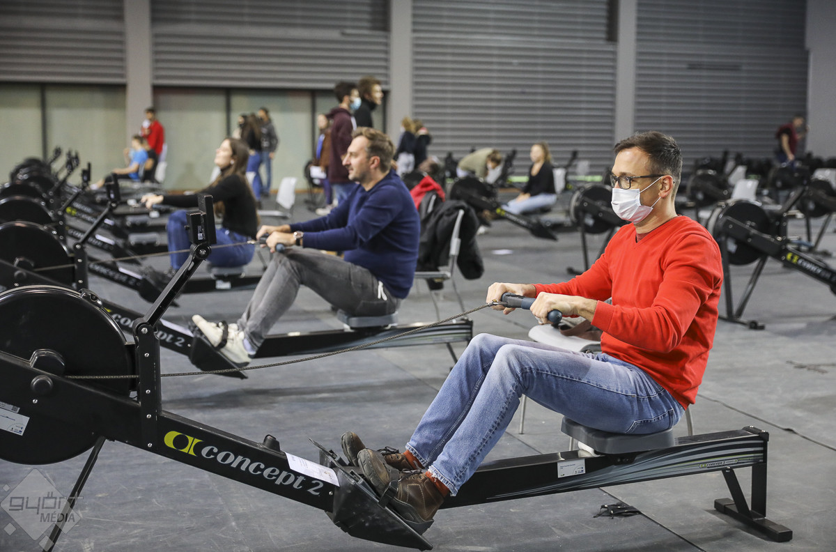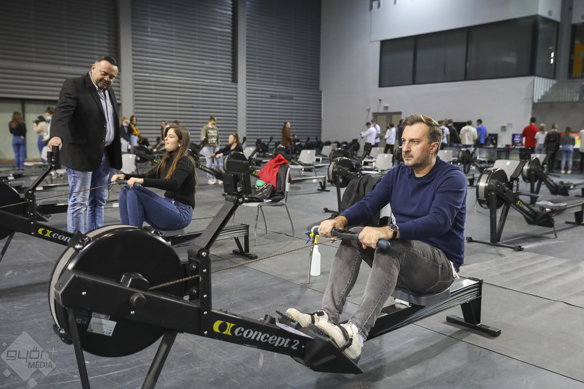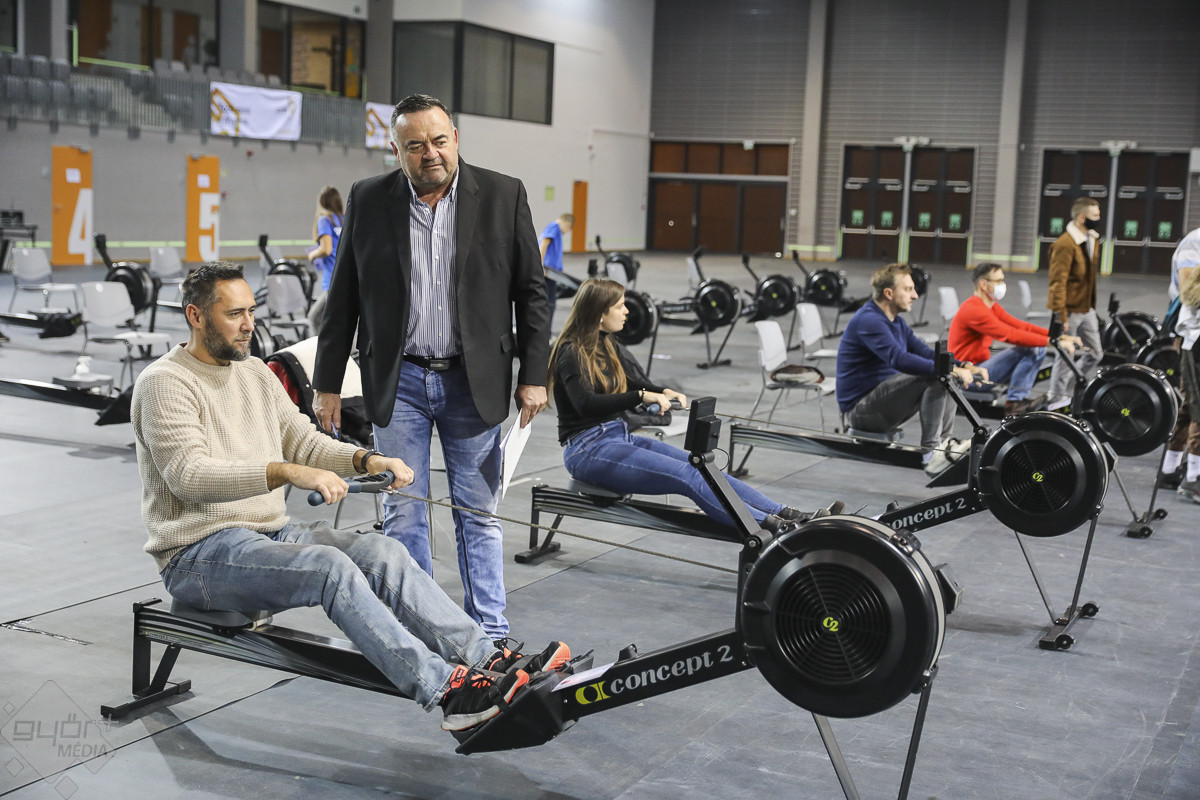 Feszültek az izmok az Olimpiai Sportpark tornacsarnokában kedd délelőtt. November 30-án kezdődött Győr város és a Győri Atlétikai Club közös rekordkísérlete, melyben arra kérik a győrieket, hogy evezzenek 750 métert. Győr idén ünnepli királyi várossá válásának 750. évfordulóját, így azt gondolták a győriek és győri közösségek számára is elérhető cél, ha 750 métert kell evezni. Papp Oszkár, a GYAC elnöke az esemény kapcsán kiemelte: “Itt valóban nem a teljesítmény a fontos, hanem a részvétel.”– ugyanis a sikeres rekordhoz 10 ezer emberre van szükség.