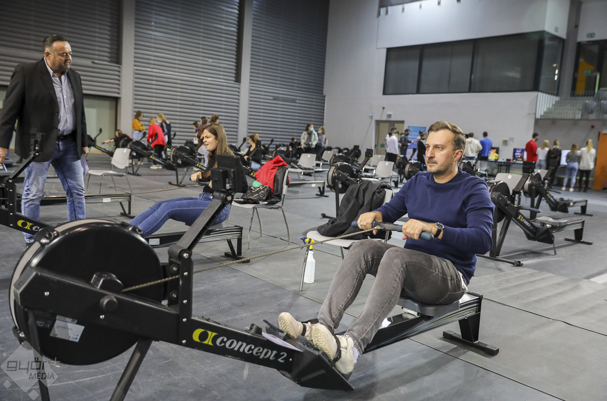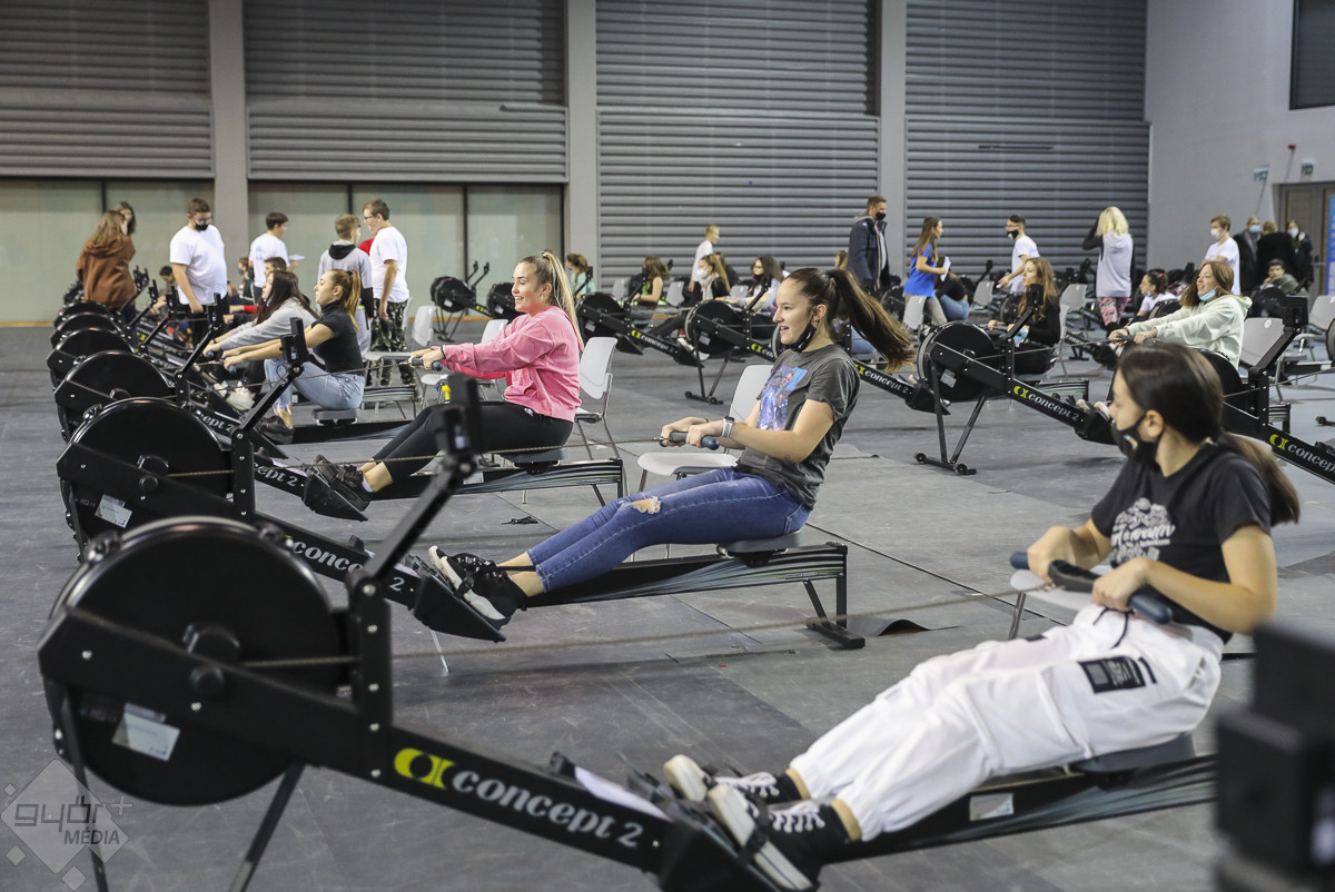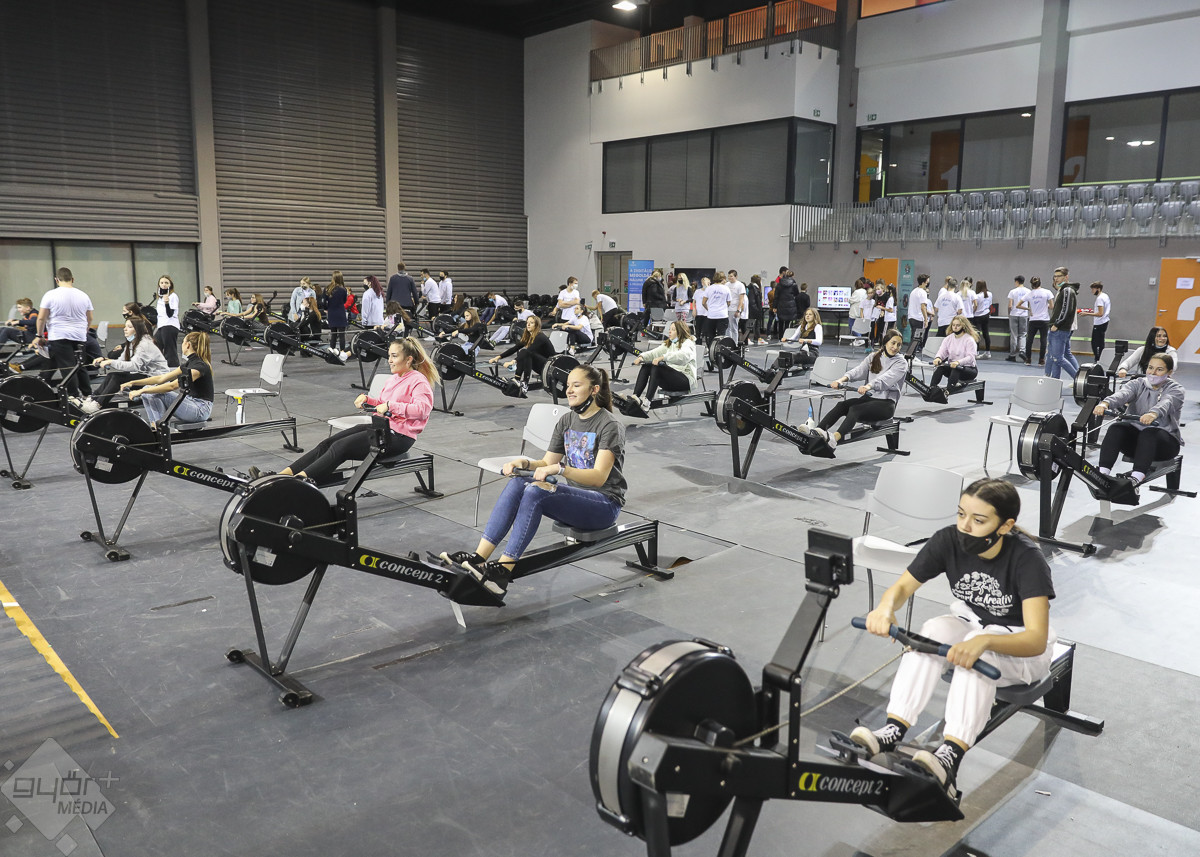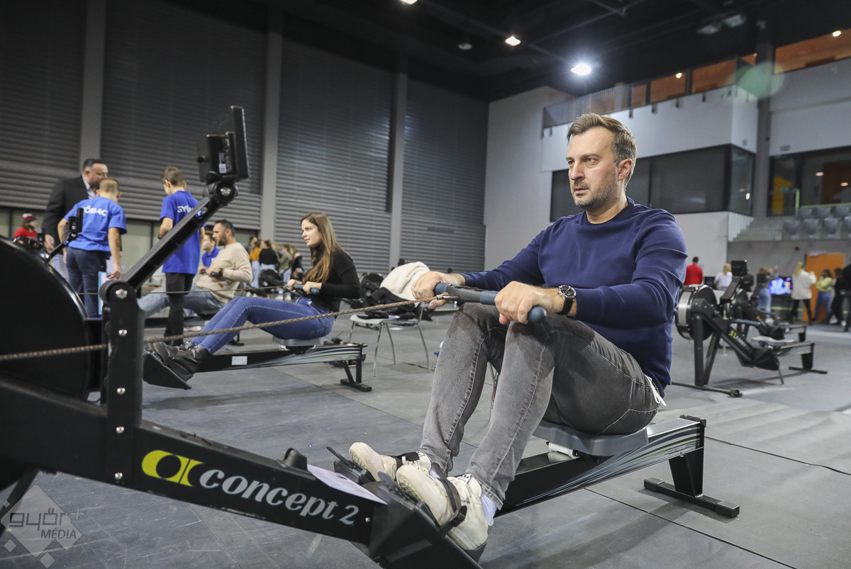 Feszültek az izmok az Olimpiai Sportpark tornacsarnokában kedd délelőtt. November 30-án kezdődött Győr város és a Győri Atlétikai Club közös rekordkísérlete, melyben arra kérik a győrieket, hogy evezzenek 750 métert. Győr idén ünnepli királyi várossá válásának 750. évfordulóját, így azt gondolták a győriek és győri közösségek számára is elérhető cél, ha 750 métert kell evezni. Papp Oszkár, a GYAC elnöke az esemény kapcsán kiemelte: “Itt valóban nem a teljesítmény a fontos, hanem a részvétel.”– ugyanis a sikeres rekordhoz 10 ezer emberre van szükség.