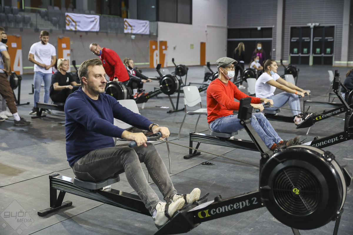 Az ergométereket a Győr+ Média munkatársai is birtokba vették. “A városi rendezvény nyilván a városi médiához is hozzátartozik, ezért döntöttem úgy, hogy részt veszek ezen a megmérettetésen és lehúzom azt a 750 métert, ami valljuk be, nem egy megterhelő dolog.”- mondta el Iván Gábor, a Győr+ marketingvezetője, aki hozzátette nagyon jó érzés volt látni a sok embert, ahogy mindenki a saját tempójában tesz a rekordért.