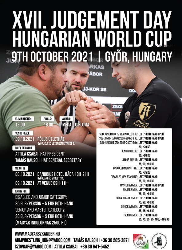 Október 9-én, szombaton, Győrben, a Külső Veszprémi úton található Pólus Üzletházban rendezik meg a Judgement Day elnevezésű szkander világkupát.