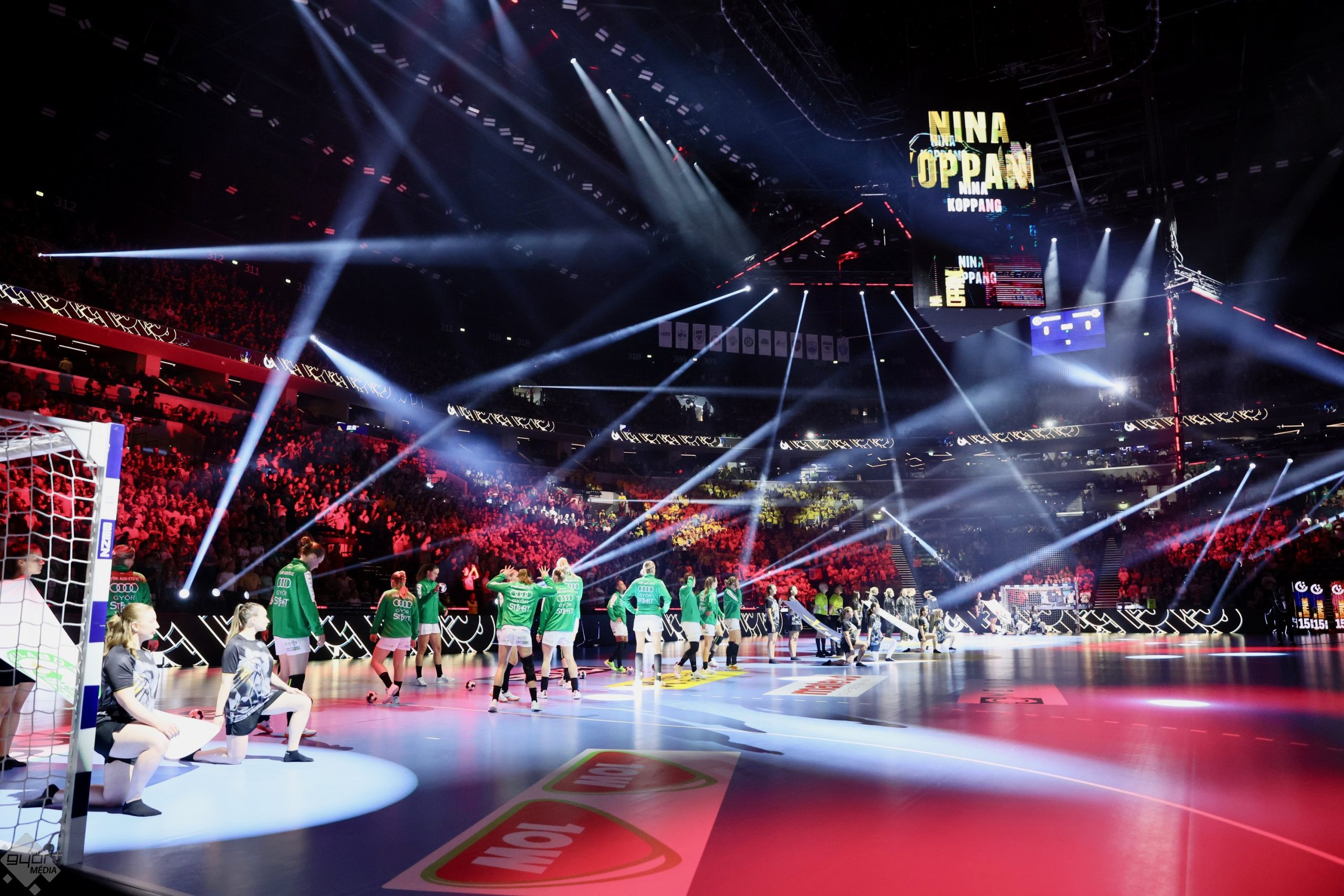 A négyesdöntő soha nem egy szokványos kézilabdamérkőzés: az amerikai filmekben látott hangulatot tükrözi és látványos felvezető show-val indul. Így volt ez most is: a szurkolók köszöntése és az edzői interjúk (ahol Per Johansson magyarul szólt a győriekhez) után elsötétült az aréna és arra kérték a közönséget, a telefonjaikkal világítva adjanak még különlegesebb miliőt a csarnoknak, majd egy látványos táncbemutató kezdődött.