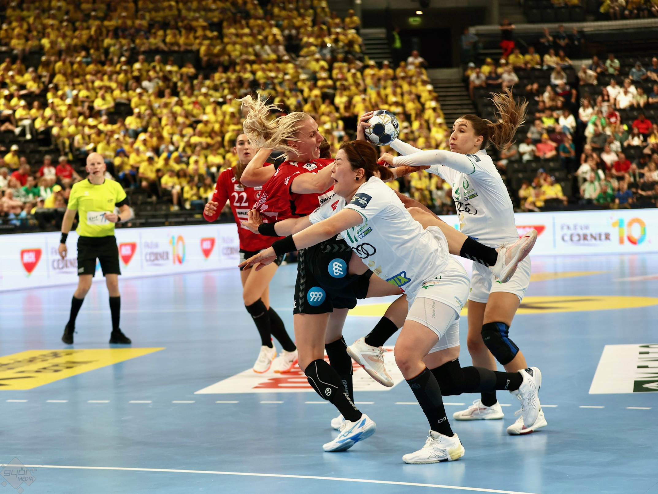 A végjátékban sűrű hatvan másodpercnek lehettünk tanúi: egy dán labdavesztés, egy időkérés, egy kihagyott győri gól és egy behúzott dán találat is belefért, a találkozót végül 29-28-ra nyerte a Győri Audi ETO KC, így döntőt játszhat.