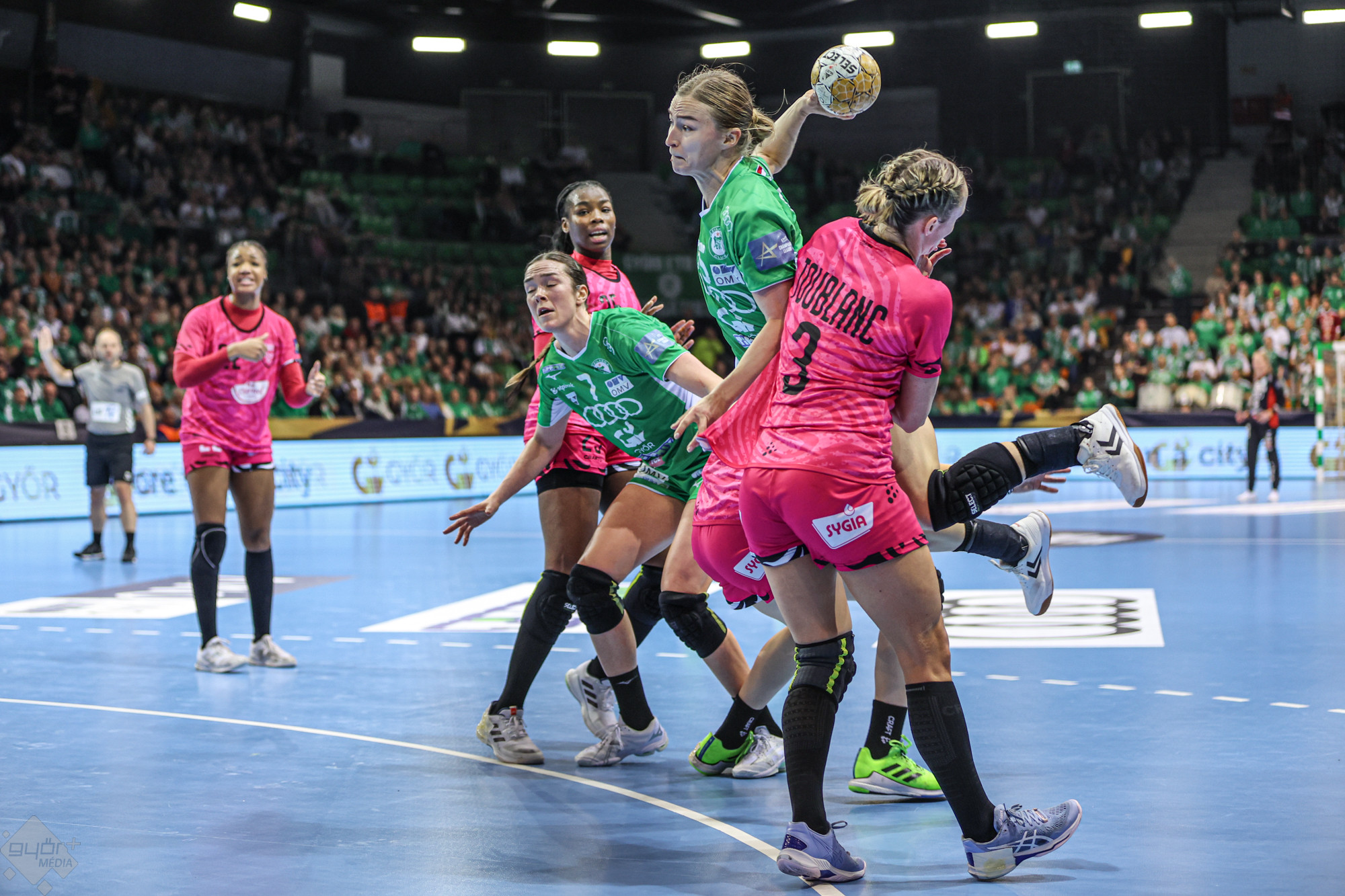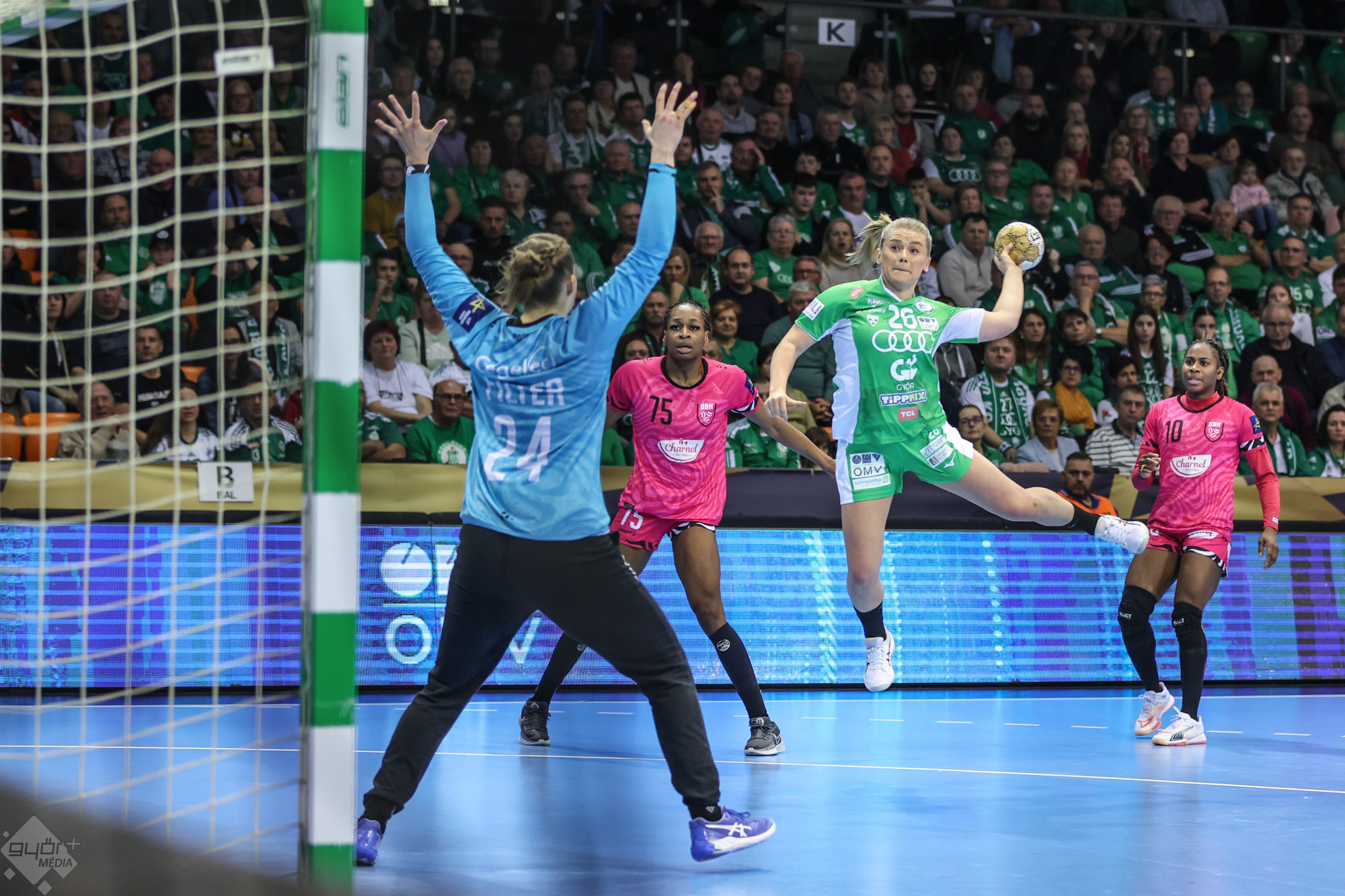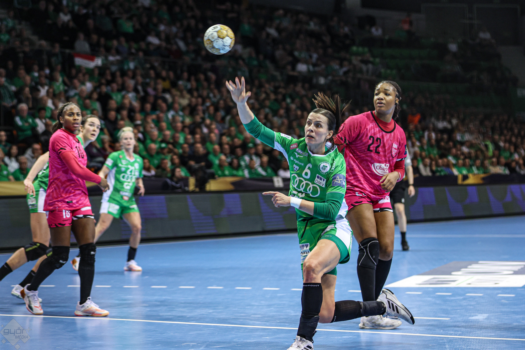A már csoportgyőztes Győr a francia Brestet fogadta hazai pályán a női kézilabda Bajnokok Ligája csoportkörének utolsó fordulójában.