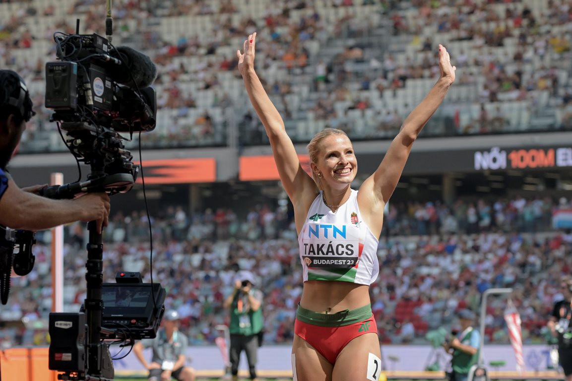 Takács Boglárka nagyszerű futással harmadik lett előfutamában és bejutott az elődöntőbe női 100 méteren a budapesti atlétikai világbajnokságon vasárnap.