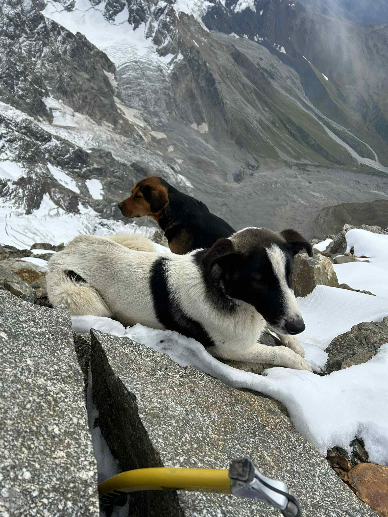 „Korábban már meséltünk a kutyáról, aki megette Szabi szendvicsét. Nos, volt egy másik kutyus is, így ketten szegődtek mellénk. Képzeld, végig feljöttek velünk. Néha kaptak tőlünk kaját, és el nem hagytak volna minket semmiért. Igazi hegyi kutyákról van szó, elképesztő, hogy hova feljöttek. Mindent megettek, amit találtak: a szöcskét, a kis madarakat, a pockokat, a havat, s tényleg mindent, amit találtak.