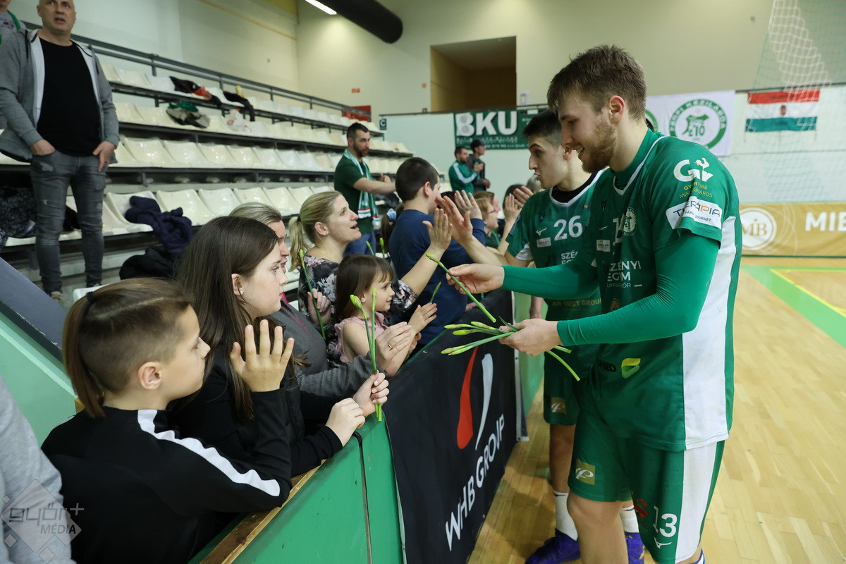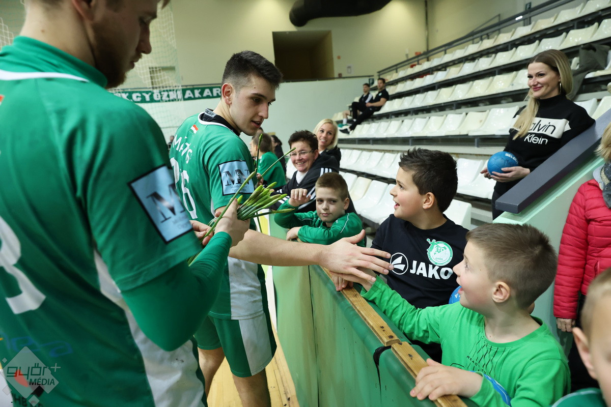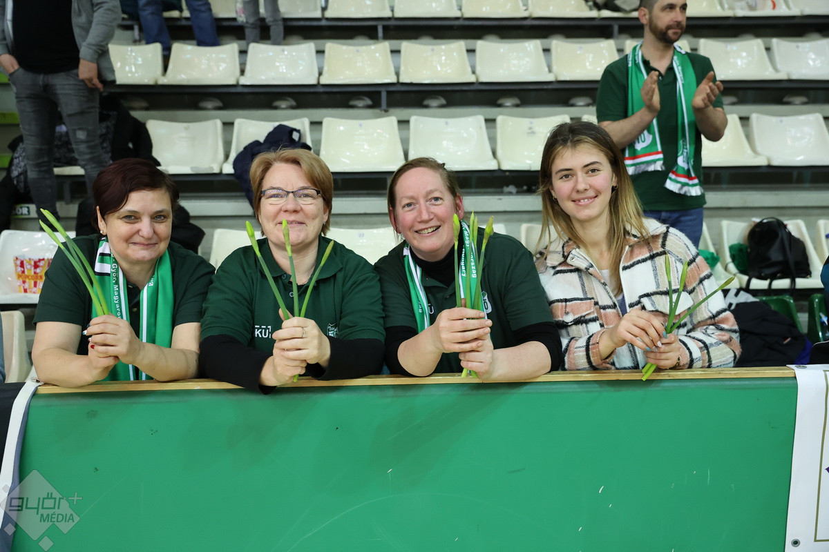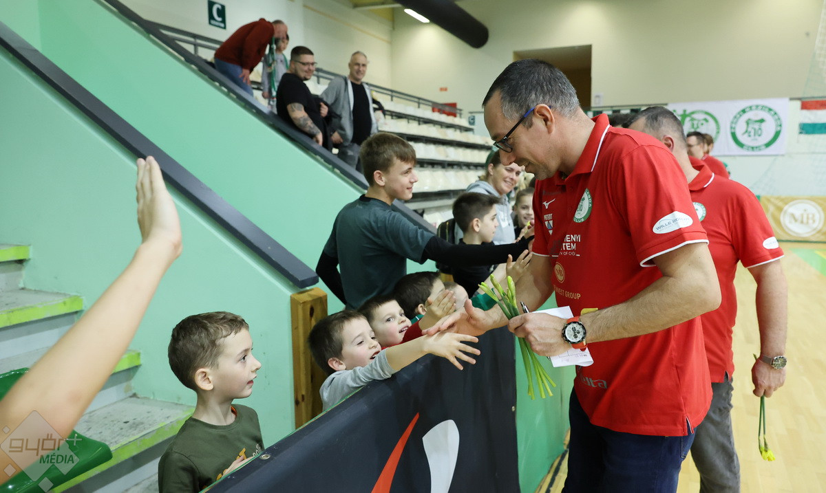 A lefújás után a győri fiúk Nőnap alkalmából virággal kedveskedtek a szurkoló hölgyeknek.