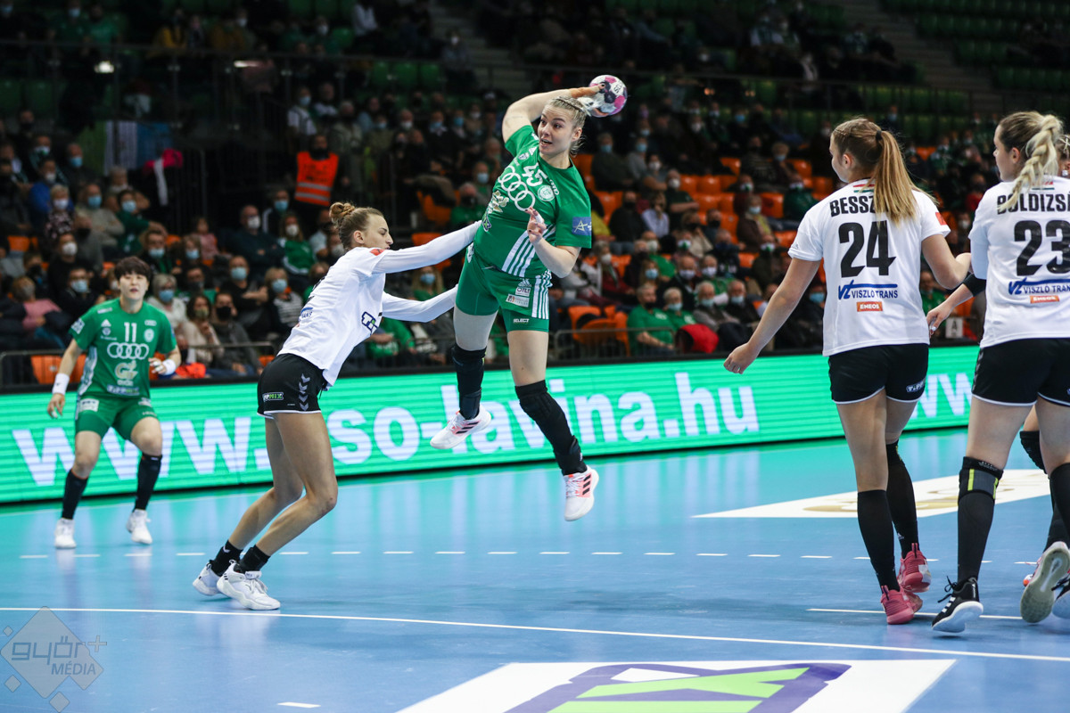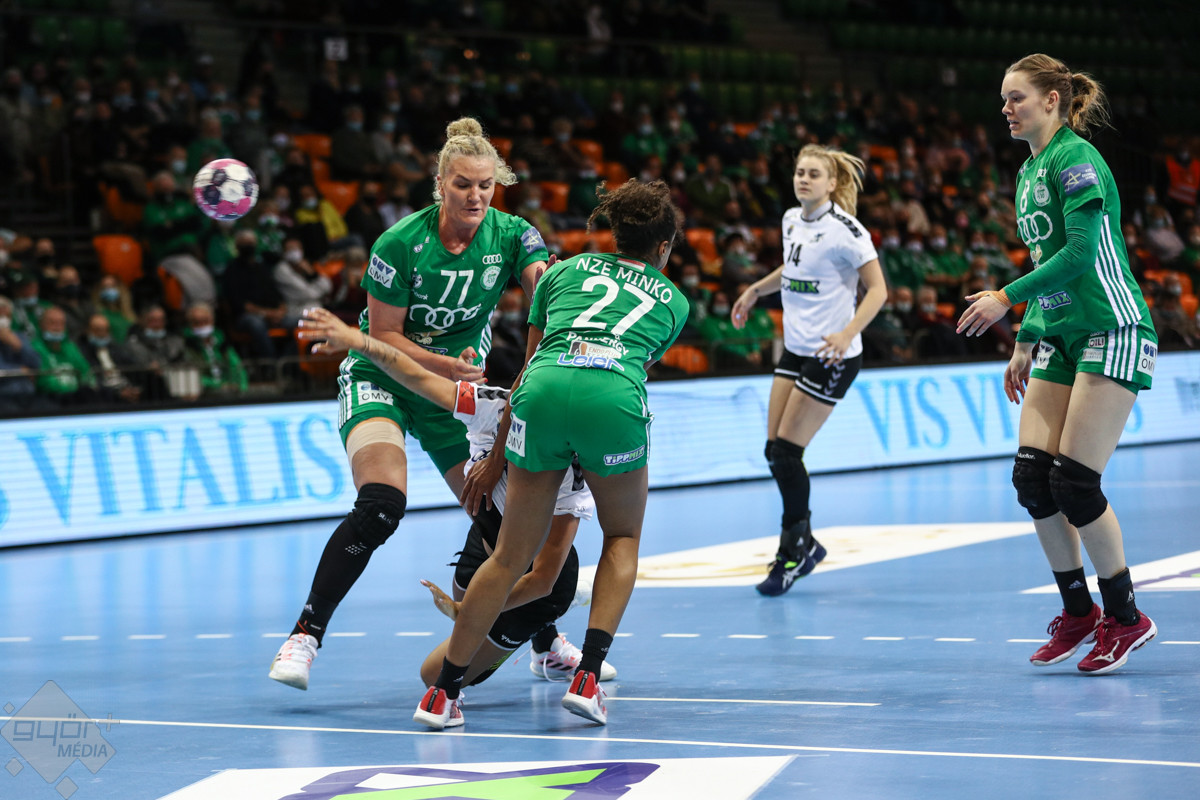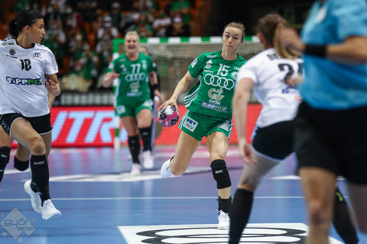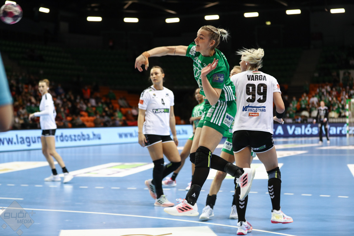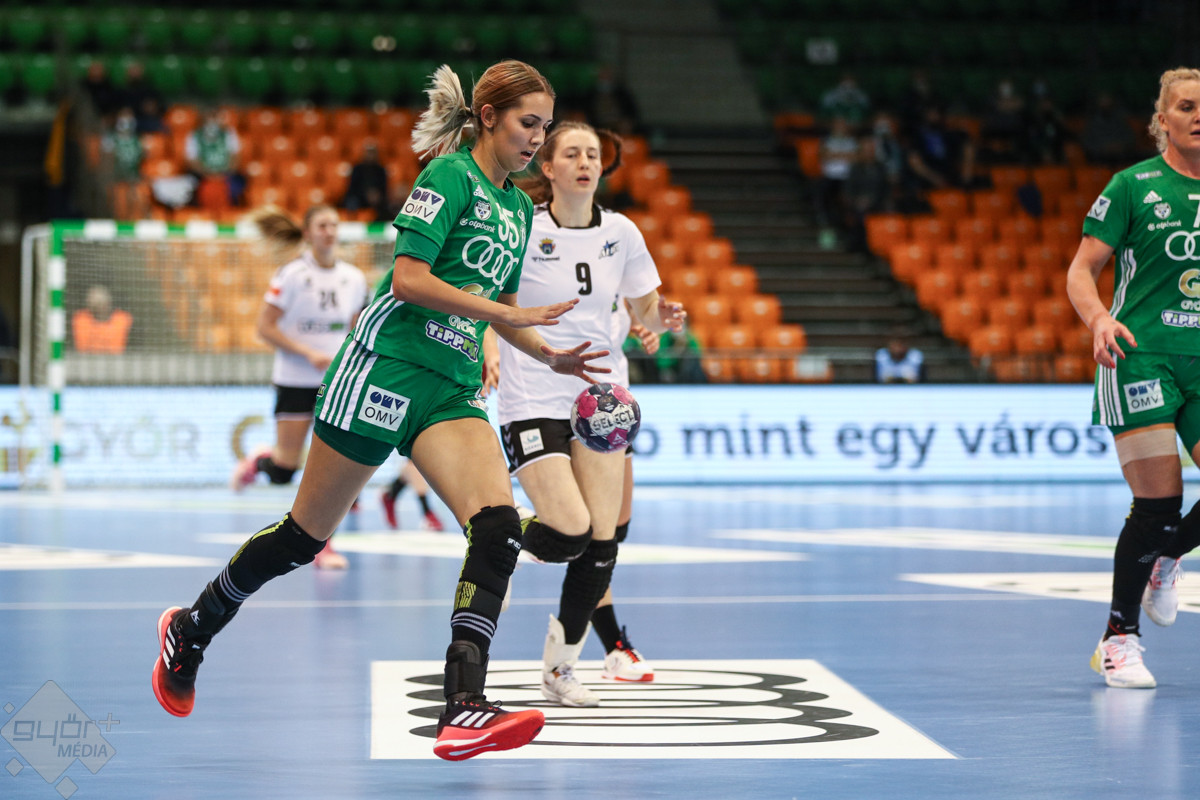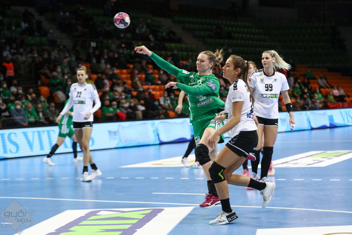 A Fehérvár elleni találkozóra Ambros Martín pihenőt adott Kari Brattset Dale-nak és Fodor Csengének. A vezetőedző a Faluvégi, Kristiansen, Nze Minko, Blohm, Hansen, Schatzl kezdővel és a kapuban Leynauddal kezdte meg a találkozót. Igaz az összecsapás első találatát a vendégek szerezték, de Faluvégi és Kristiansen góljának köszönhetően a negyedik percben már 2 – 1-re vezetetett a győri csapat. Amandine Leynaud remek védésekkel segítette a masszívan védekező csapatot, és a 15. percben már 8 – 4-es eredmény állt az eredményjelzőn. A 21. percre fordulva Háfra góljával már hét gólos volt a győriek előnye (13 – 6). A mérkőzés első félideje egy vendég góllal és 16 – 11-es győri vezetéssel zárult.
