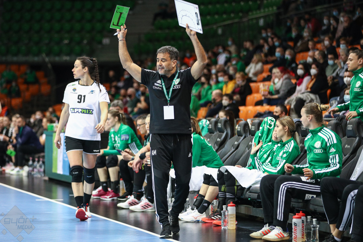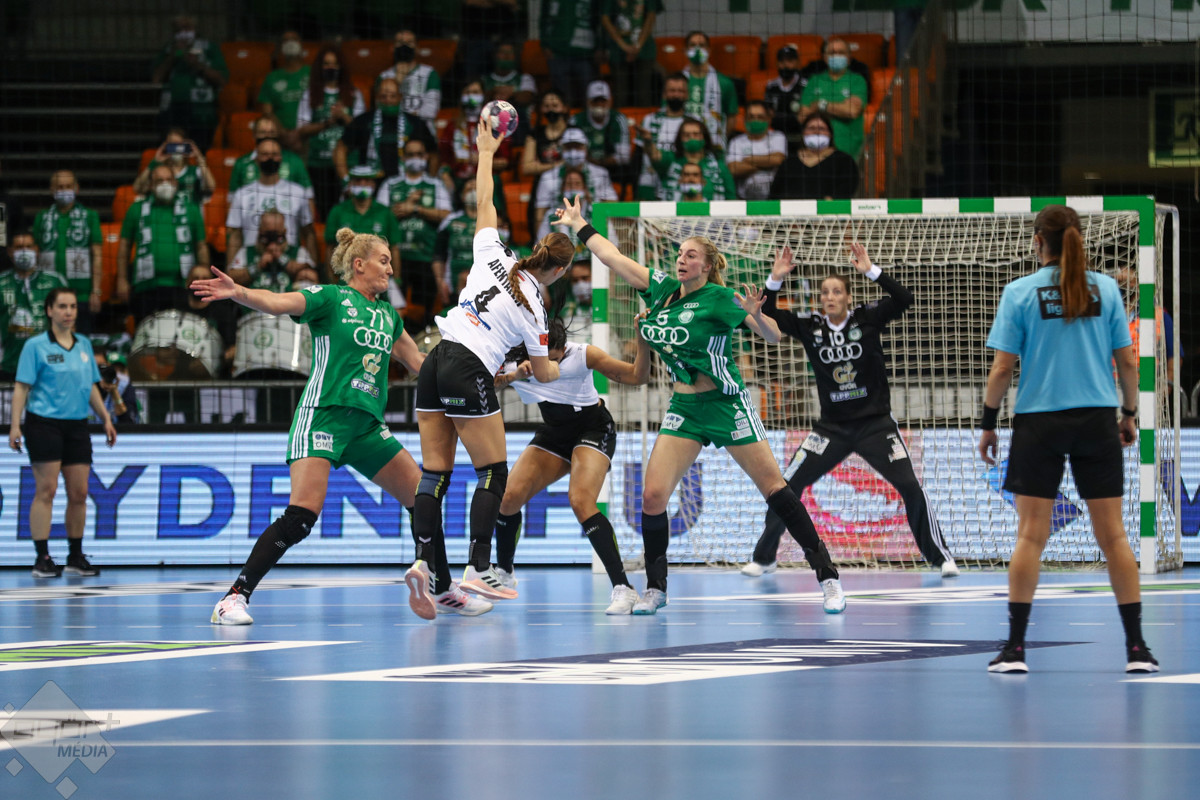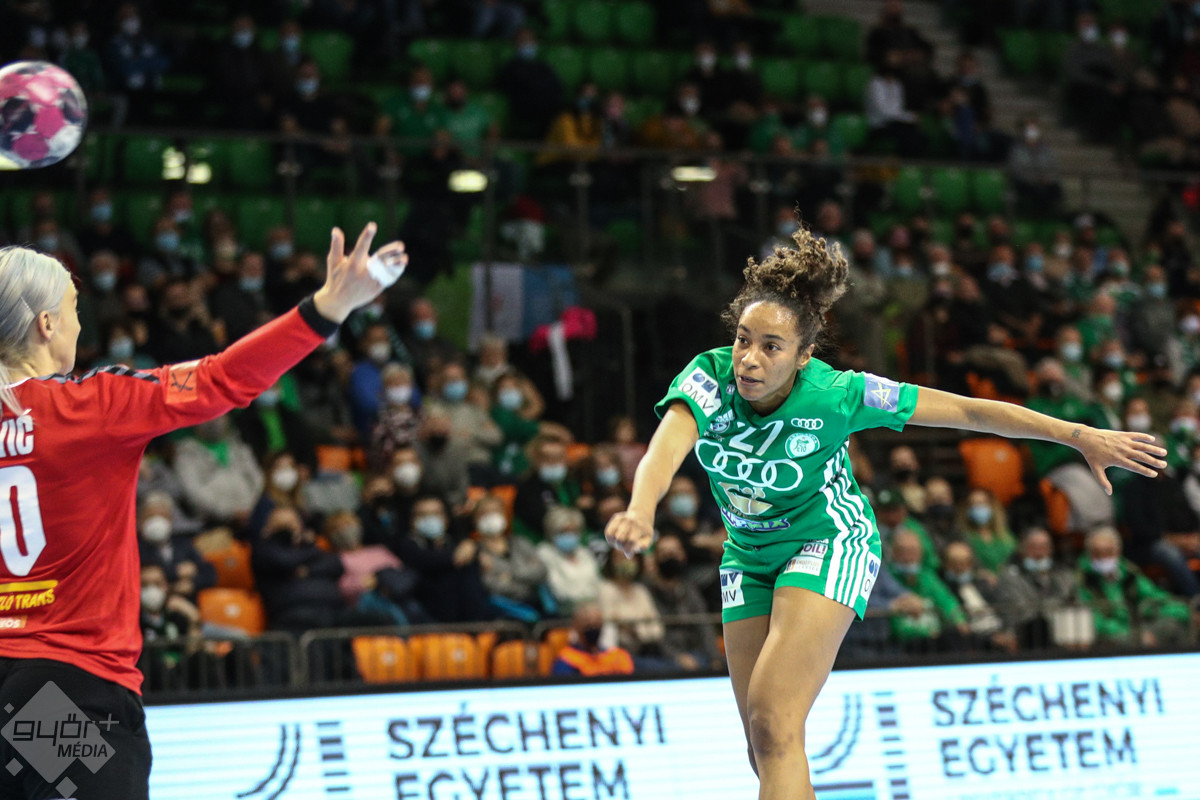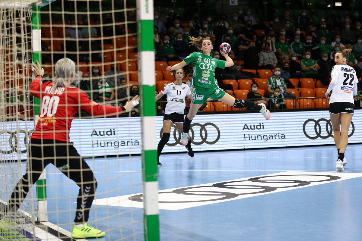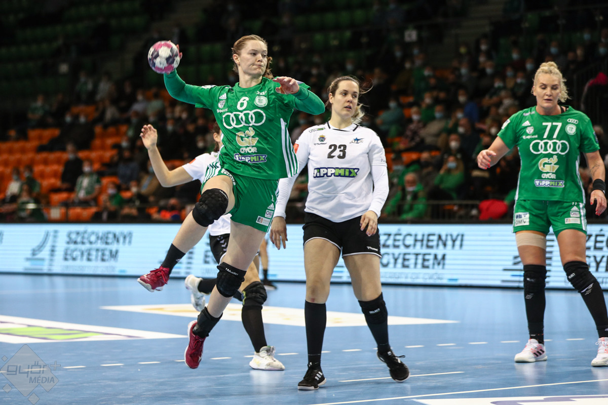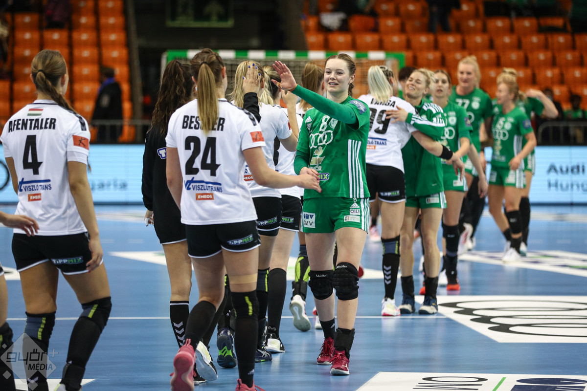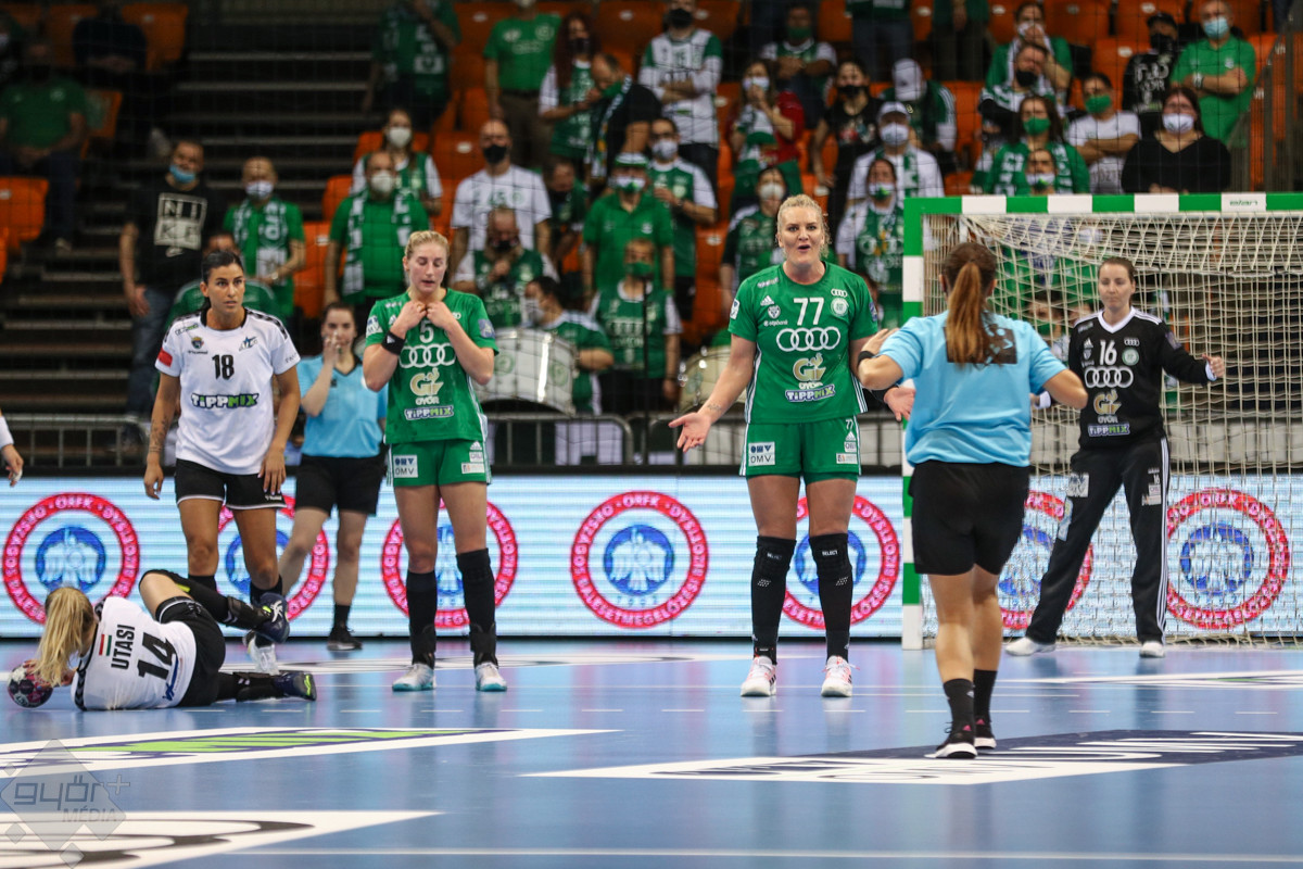 A Fehérvár elleni találkozóra Ambros Martín pihenőt adott Kari Brattset Dale-nak és Fodor Csengének. A vezetőedző a Faluvégi, Kristiansen, Nze Minko, Blohm, Hansen, Schatzl kezdővel és a kapuban Leynauddal kezdte meg a találkozót. Igaz az összecsapás első találatát a vendégek szerezték, de Faluvégi és Kristiansen góljának köszönhetően a negyedik percben már 2 – 1-re vezetetett a győri csapat. Amandine Leynaud remek védésekkel segítette a masszívan védekező csapatot, és a 15. percben már 8 – 4-es eredmény állt az eredményjelzőn. A 21. percre fordulva Háfra góljával már hét gólos volt a győriek előnye (13 – 6). A mérkőzés első félideje egy vendég góllal és 16 – 11-es győri vezetéssel zárult.
