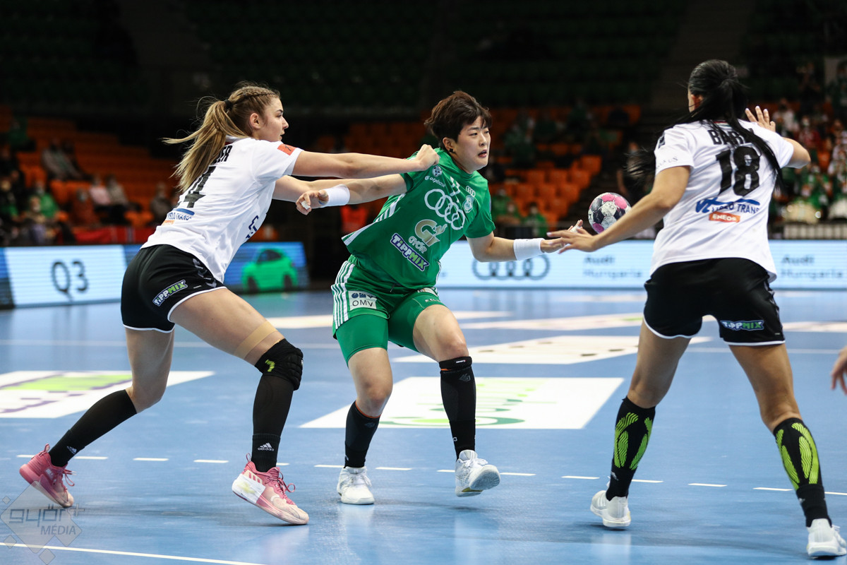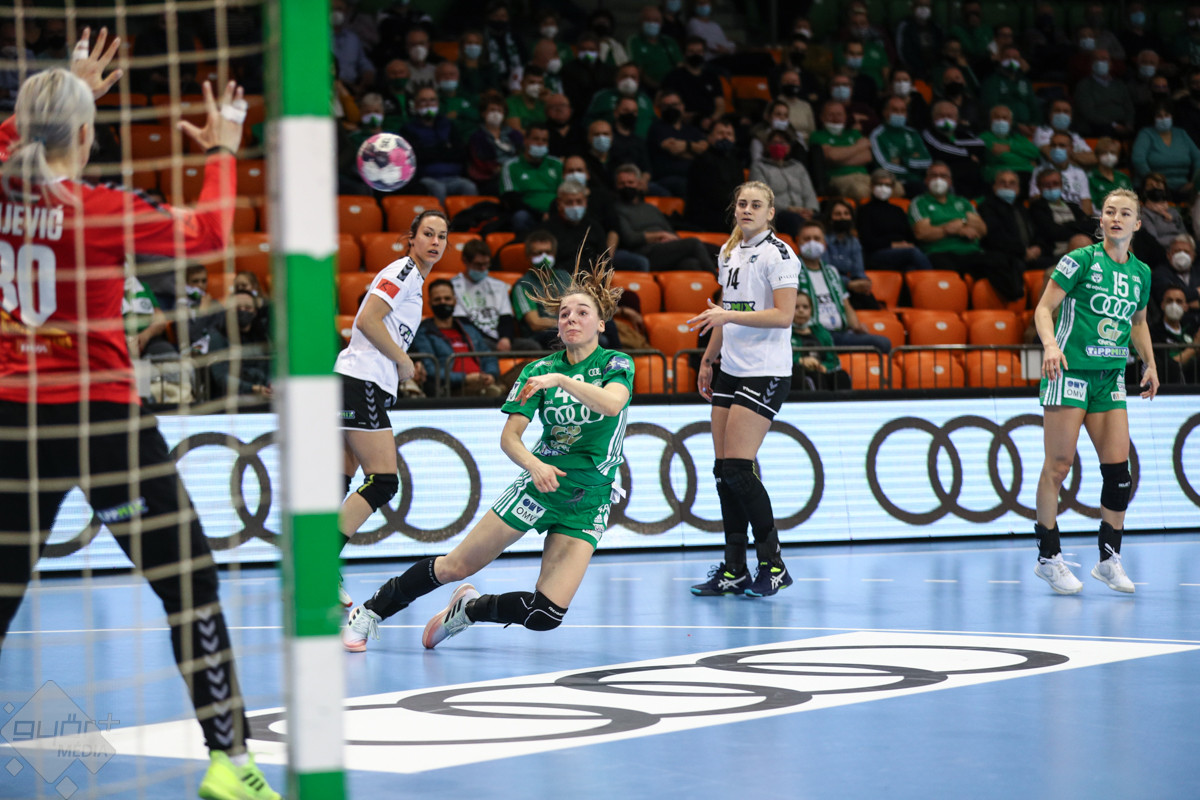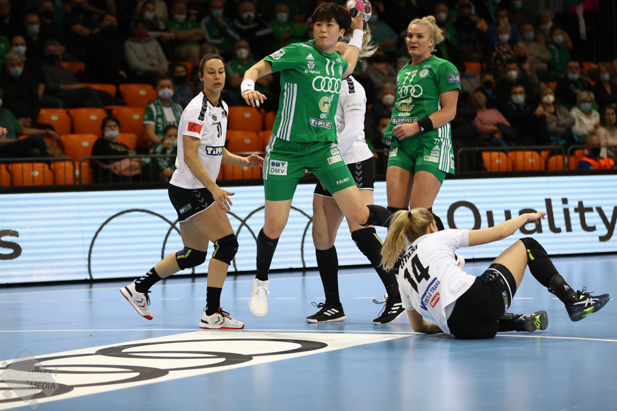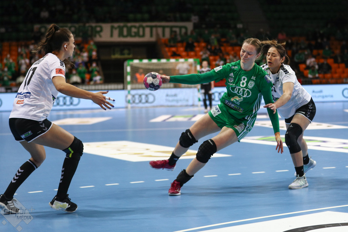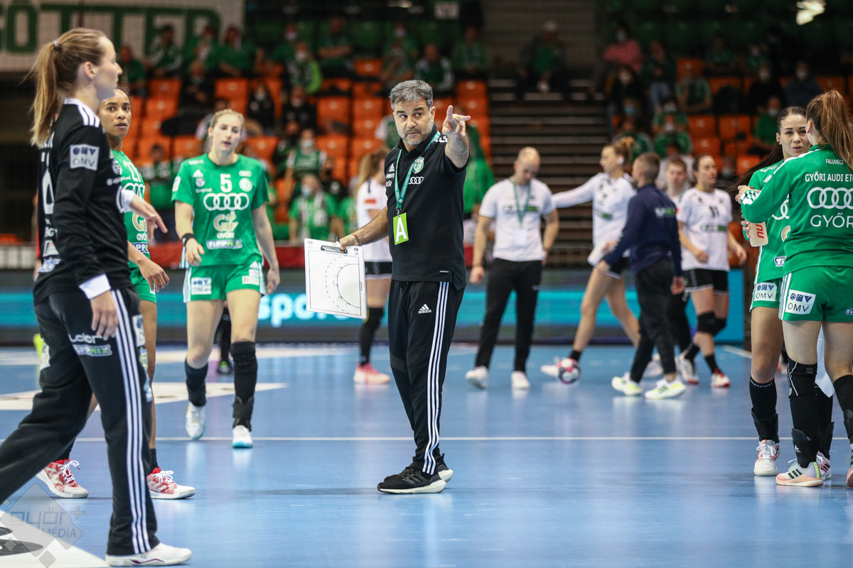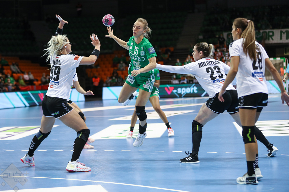 A Fehérvár elleni találkozóra Ambros Martín pihenőt adott Kari Brattset Dale-nak és Fodor Csengének. A vezetőedző a Faluvégi, Kristiansen, Nze Minko, Blohm, Hansen, Schatzl kezdővel és a kapuban Leynauddal kezdte meg a találkozót. Igaz az összecsapás első találatát a vendégek szerezték, de Faluvégi és Kristiansen góljának köszönhetően a negyedik percben már 2 – 1-re vezetetett a győri csapat. Amandine Leynaud remek védésekkel segítette a masszívan védekező csapatot, és a 15. percben már 8 – 4-es eredmény állt az eredményjelzőn. A 21. percre fordulva Háfra góljával már hét gólos volt a győriek előnye (13 – 6). A mérkőzés első félideje egy vendég góllal és 16 – 11-es győri vezetéssel zárult.