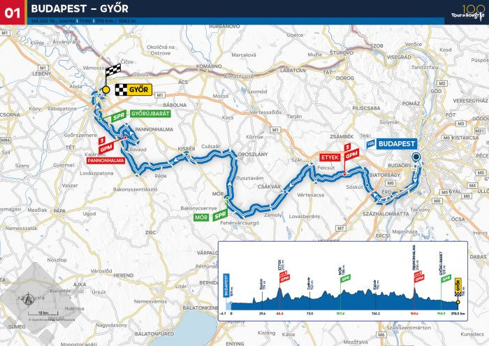 A  mezőny Budapesten, a Szent Gellért téren rajtol el, egy lassú kört követően elhagyják a várost és Győr felé veszik az irányt. Az útvonalat két harmadik kategóriás hegyi szakasz teszi színesebbé Etyeken és Pannonhalmán, Móron és Győrújbarát pedig pontgyűjtő szakasz lesz.
