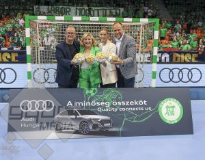 Michael Breme, az Audi Hungaria igazgatóságának elnöke, Németh Kinga, az igazgatóság személyügyért és szervezetért felelős tagja, Görbicz Anita, a Győri Audi ETO KC elnöke és Endrődi Péter, a Győri ETO Kft. ügyvezetője szombaton írták alá az új, hároméves időtartamra szóló szponzorációs szerződést a klub Vipers elleni hazai Bajnokok Ligája-mérkőzésén. Az Audi Hungaria és a … Bővebben: Újabb három évig az Audi lesz az ETO KC névadó főszponzora