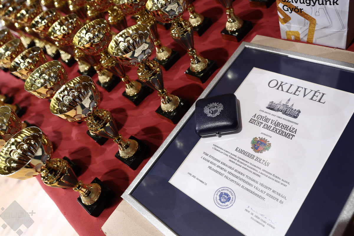 Rózsavölgyi László, dr. Dézsi Csaba András, Győr polgármesterének üdvözlő szavaival érkezett, majd az önkormányzat sportbizottságának elnöke kiemelkedő és példaértékű sportolói pályafutásának elismeréseként Győr város ezüst emlékérmét adományozta a kiváló sportolónak.