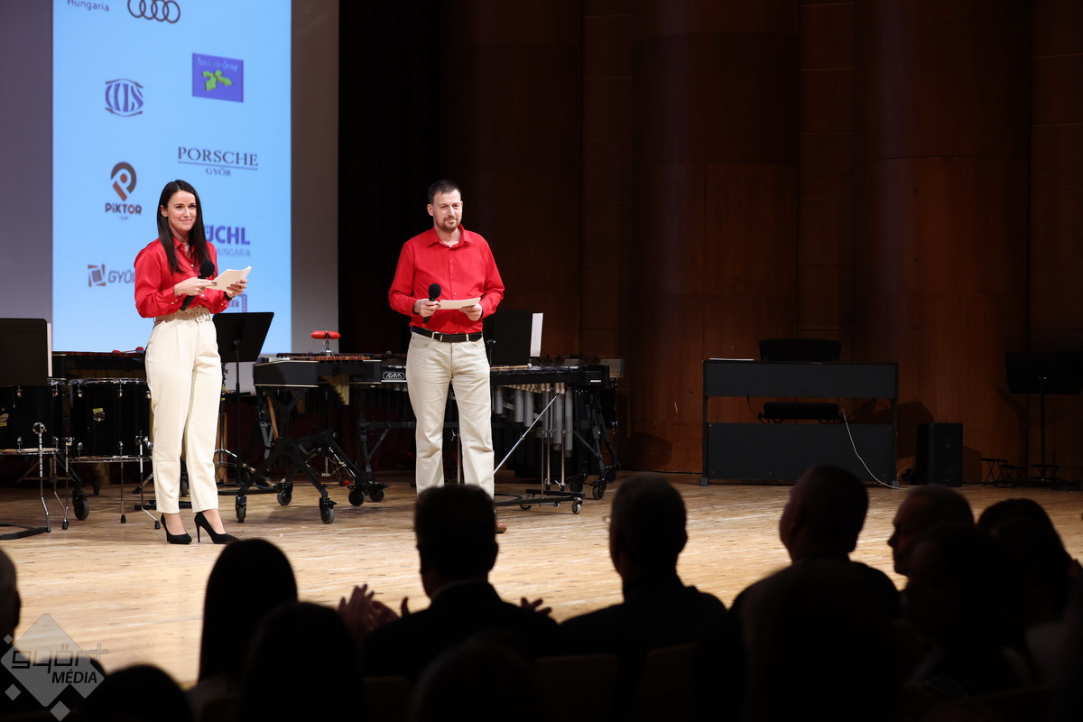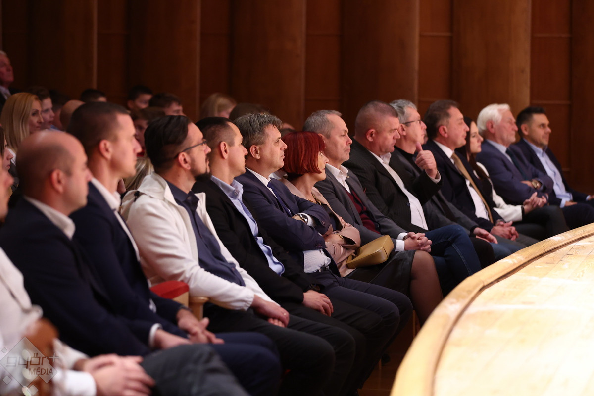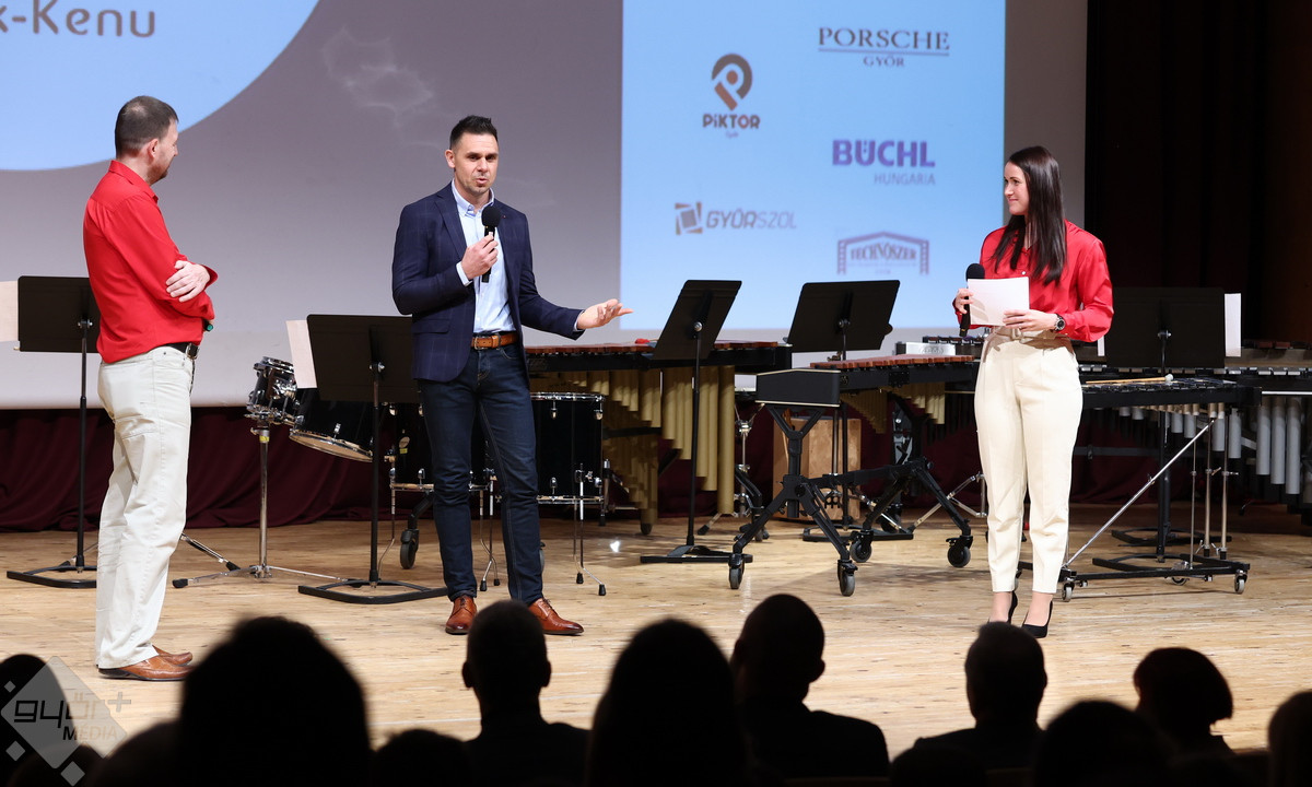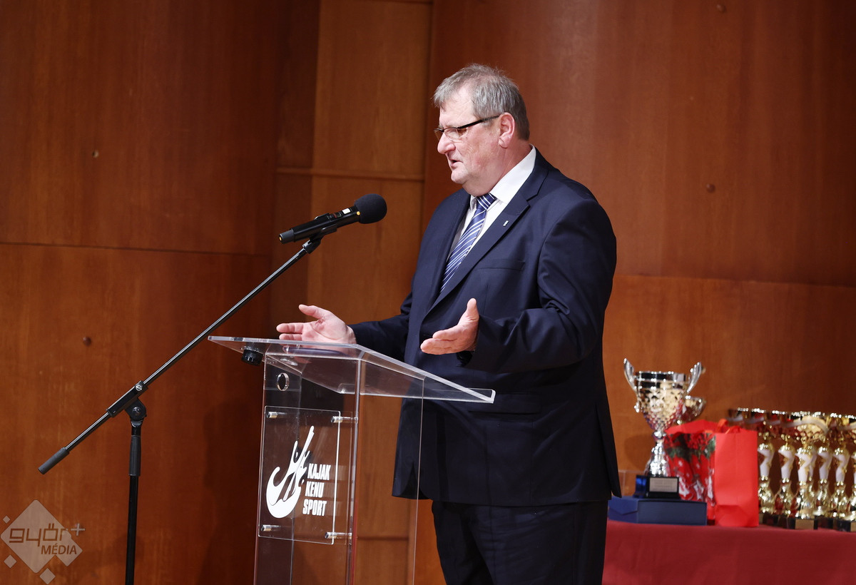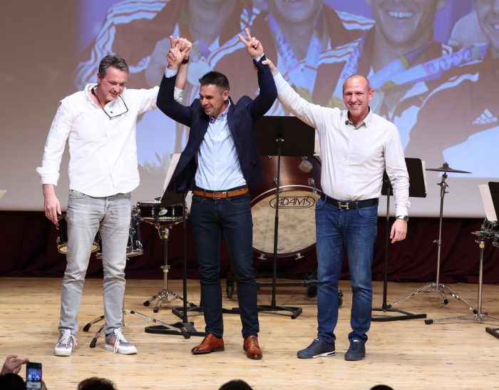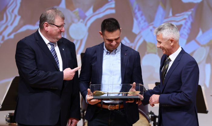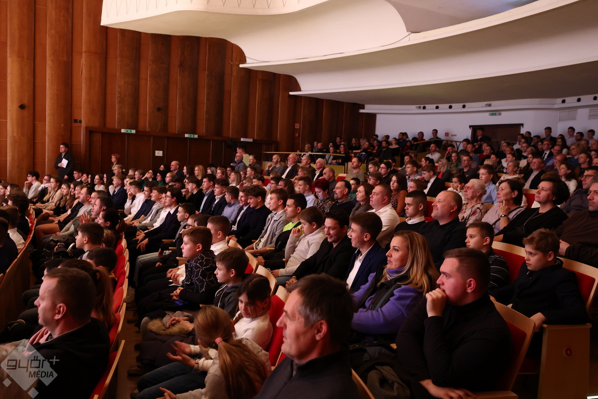 Kammerer a színpad közepén állva meghatottan mondott köszönetet az elmúlt huszonöt évért Győrnek, a pályatársaknak, az edzőknek és a családjának: