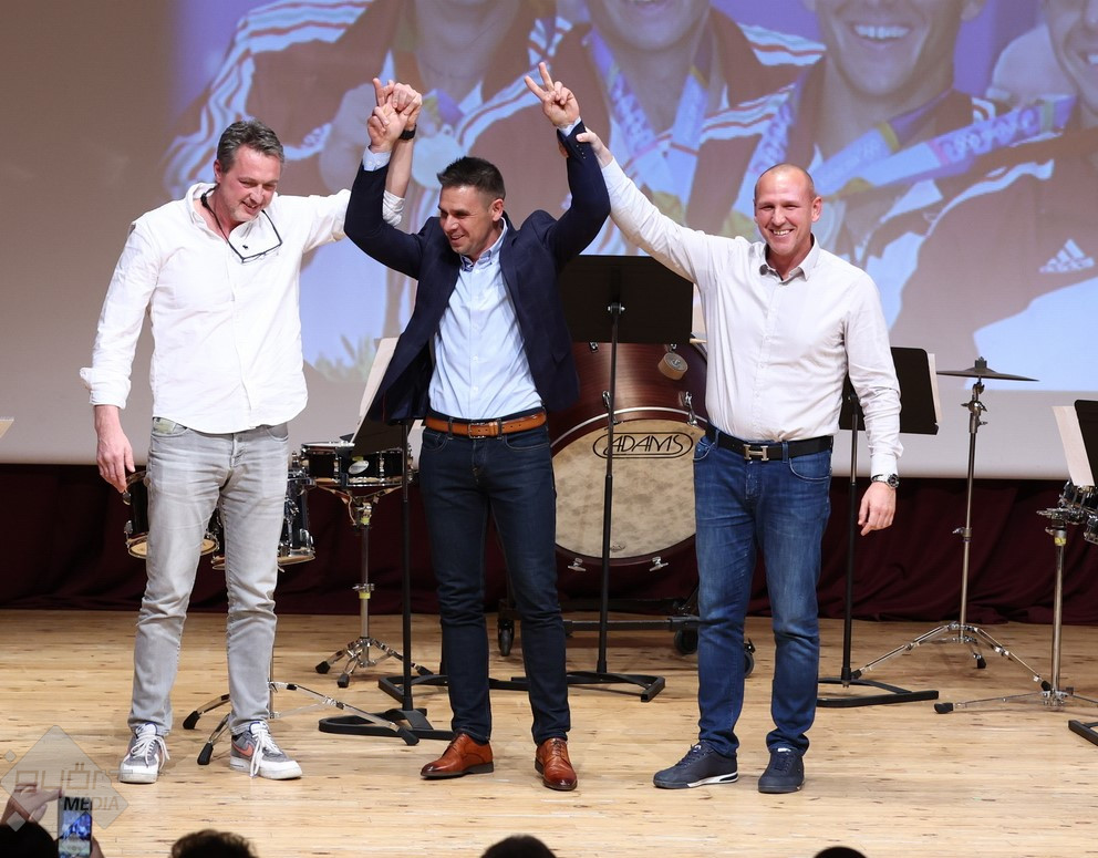 A klub meglepetés vendégekkel is készült a bajnoknak: váratlanul a színpadra szólították a legendás négyesből Storcz Botondot és Horváth Gábort (Vereckei Ákos igazolt hiányzó volt ezen az estén). Horváth Gábor köszönetet mondott, amiért Kammererrel versenyezhetett, Storcz Botond pedig tréfásan megjegyezte, hogy már legalább tíz éve várnak erre a pillanatra, hiszen ők már jóval korábban szögre akasztották a lapátot, mint a sportággal Gödön megismerkedő győri ikon.
