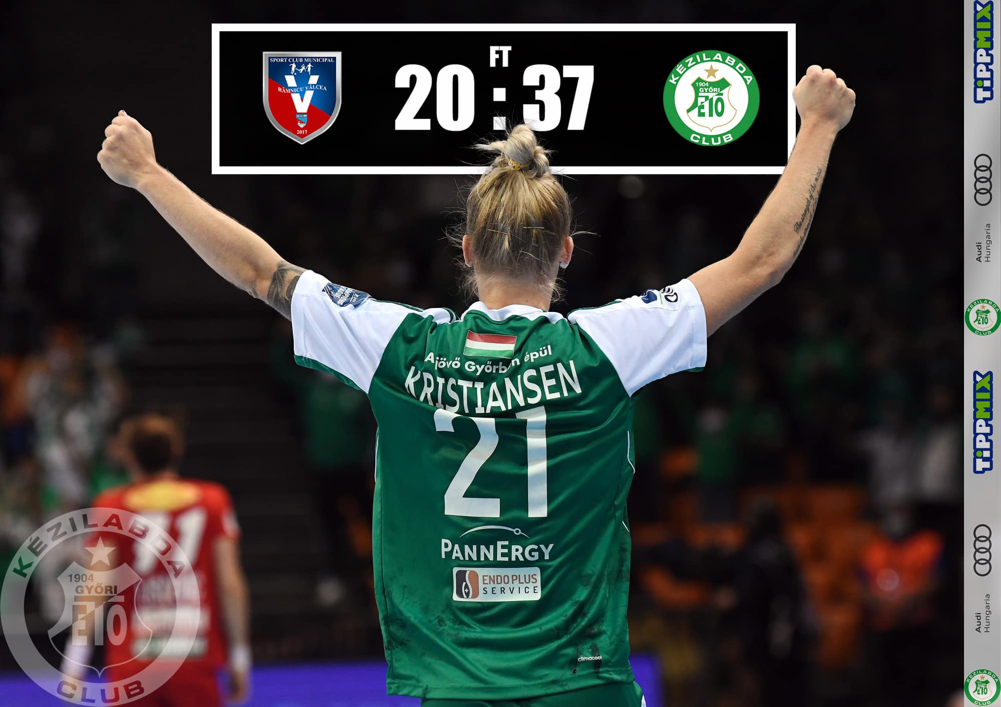A címvédő Győri Audi ETO KC 17 góllal győzött a román SCM Ramnicu Valcea otthonában a női Bajnokok Ligája csoportkörének tizedik fordulójában, vasárnap.