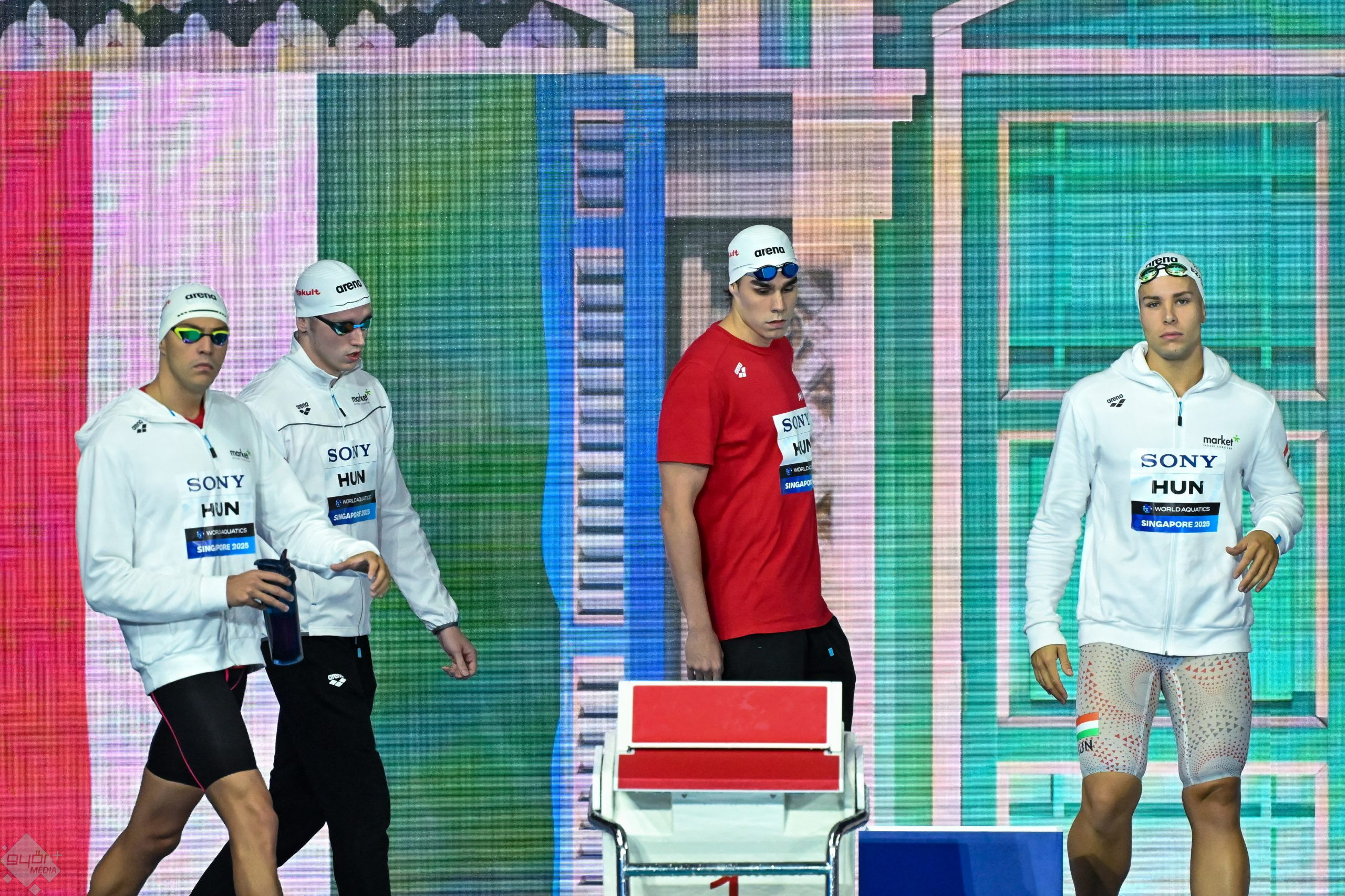 A váltóban a délelőtti előfutamok során még Kós Hubert volt a második ember, azonban mivel rá hétfőn fontos feladatok várnak 100 méter háton, ezért pihent, helyére pedig Szabó Szebasztián szállt be.