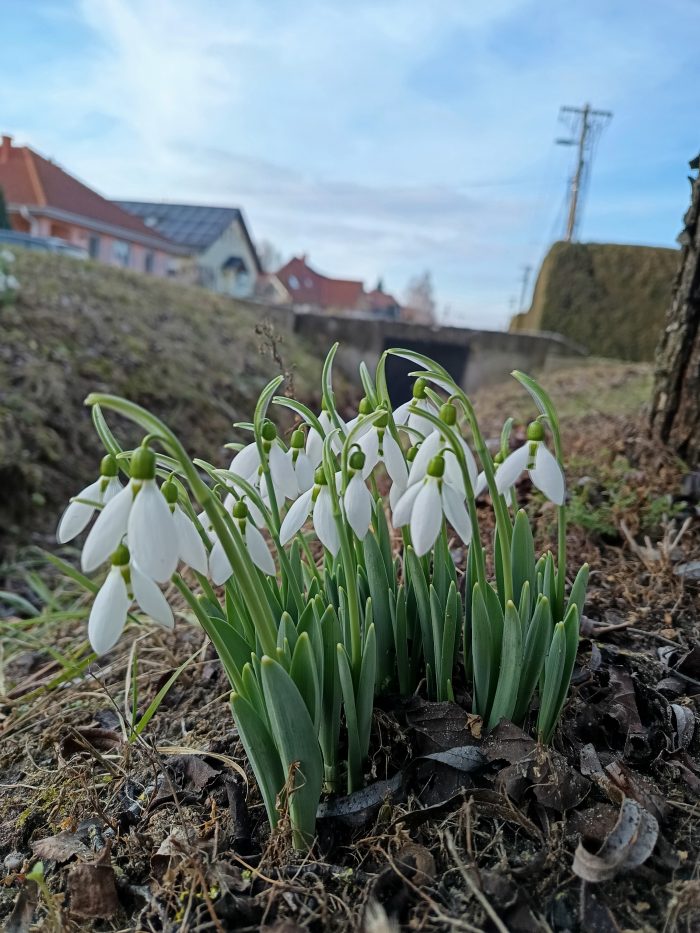 Az egyik falucska utcájának szélén nagy tömegben virágzik a védett növény, a kedvező mikroklíma és a sok napfény miatt, itt található a környék legnagyobb összefüggő “hóvirág-tengere”. Nem csoda, hogy sokan állnak meg és fotózzák a gyönyörű virágokat.