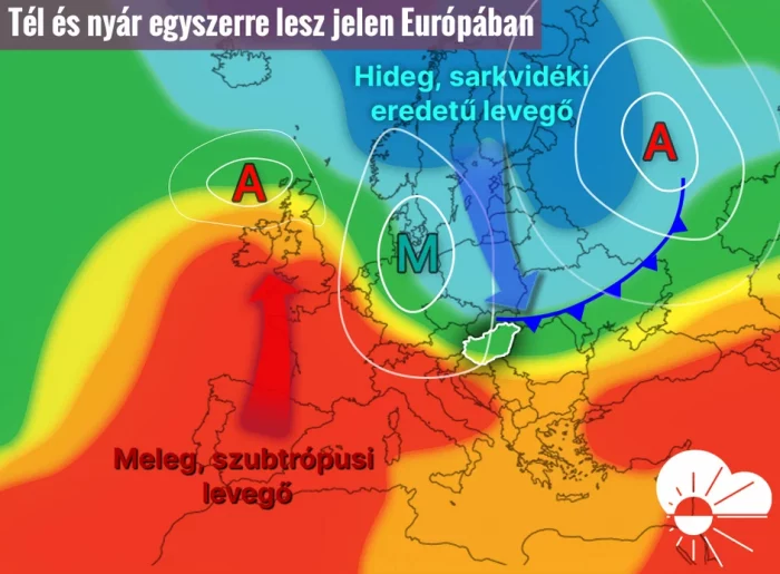 Mindeközben Észak-, Északkelet-Európában egy ciklon erősödik meg, melynek hidegfrontja hétvégén átvonul Európa középső és keleti része fölött, mögötte sarkvidéki eredetű légtömegek érkeznek.