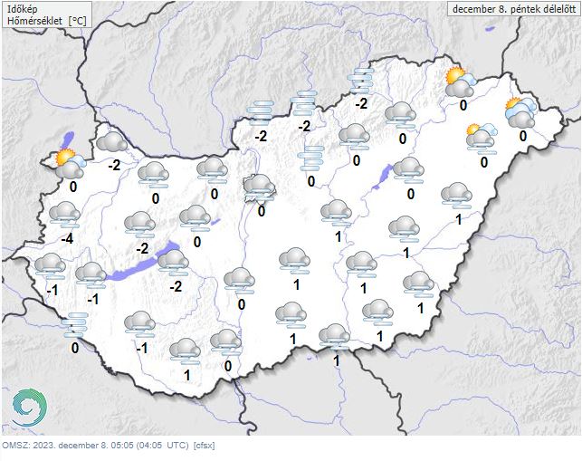 Hazánk nagyobb részén marad a túlnyomóan borult, párás idő – írja az Országos Meteorológiai Szolgálat.Főként a Dunántúl nyugati részén, illetve északkeleten lehet szakadozottabb, kevesebb a felhőzet. Az éjszaka képződött zúzmarás köd helyenként tartósan megmaradhat.