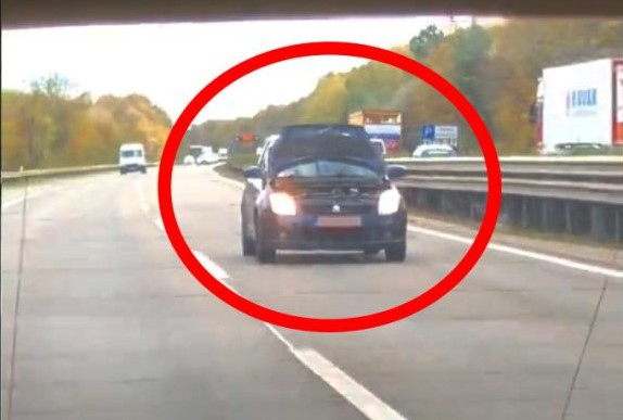 Nem mindennapi felvételt a BpiAutósok.hu közölte, amelyen az látható amint egy Suzuki felcsapott motorháztetővel közlekedik az M1-es autópályán.