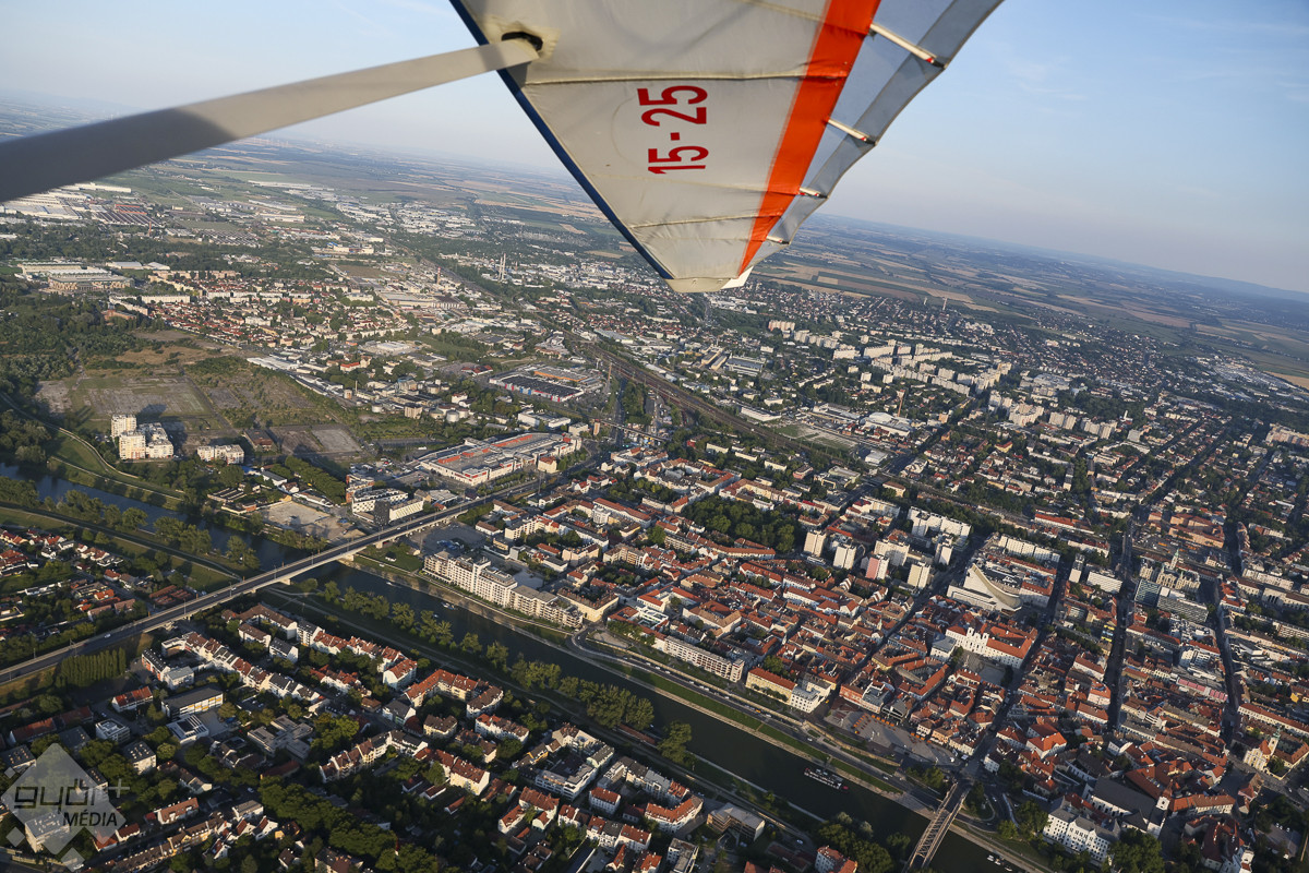 „Használok drónt és fotóztam már kisrepülőről és hőlégballonból is, de ez egy teljesen új élmény volt. Csodaszép, szélcsendes időben tettünk egy kört a város felett, egészen különleges repülés volt. Kismegyer után Ménfőcsanak fölé szálltunk, majd onnan kanyarodtunk vissza a belváros irányába.