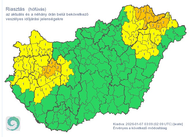 Szerdán keleten várható jelentős havazás, csütörtök reggelig további 10-20 centiméter friss hó várható, ezért a HungaroMet Zrt. szerdára több keleti vármegyére másodfokú (narancs) figyelmeztetést adott ki.