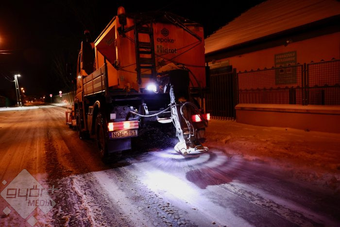Az esti és éjszakai hazavás után is teljes kapacitással dolgozik a Győr-Szol Zrt, folyamatos az utak síkosságmentesítése.