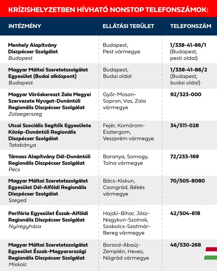 A további városokban (Zalaegerszeg, Tatabánya, Pécs, Szeged, Nyíregyháza, Miskolc) éjjel-nappal hívható diszpécserszolgálatok számai megtalálhatók a kormány Facebook-oldalán.