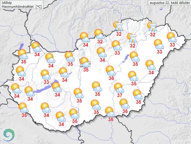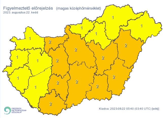A legmagasabb nappali hőmérséklet általában 31 és 36 fok között alakul. Magas középhőmérséklet első- és másodfokú figyelmeztetést adtak ki a szakemberek.